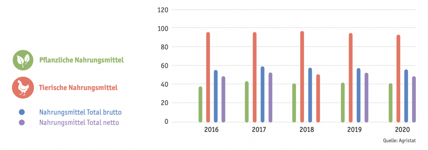 Den höchsten Selbstversorgungsgrad (SVG) weist die Schweiz bei Milch und Milchprodukten auf, bei denen regelmässig mehr als 100 Prozent des inländischen Bedarfs produziert werden. Hingegen liegt er bei pflanzlichen Ölen und Fetten bei nur 24 Prozent. Bei allen Nahrungsmitteln ist der SVG leicht rückläufig.