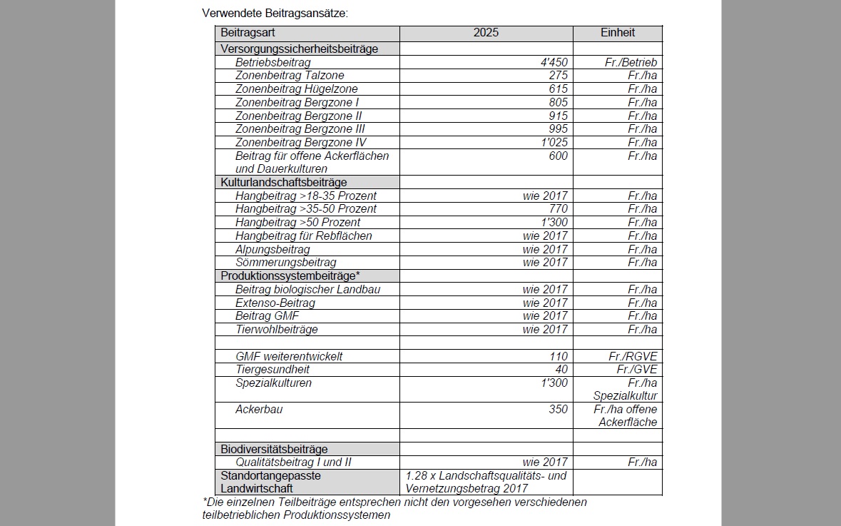 Mit mehr Produktionssystembeiträgen sollen laut einer Mitteilung des BLW "die Leistungen im Bereich Umwelt und Tiergesundheit stärker gefördert werden und subsidiär zur Branche eine Basis zur besseren Inwertsetzung der Produkte geschaffen werden". Analog zur AP 14-17 soll es einen Übergangsbeitrag geben, der auf neuen Grundlagen berechnet wird.