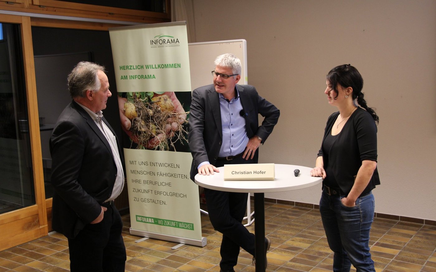 Weiter forderte Lisa Strahm eine vermehrte Möglichkeit für Männer und Frauen, Ausbildungen in der Landwirtschaft modular zusammenstellen zu können und dass diese Möglichkeit auch vermehrt beworben wird. Dazu sagte Christian Hofer: «Die Ausbildung ist das A und O. Bauern und Bäuerinnen können eine hohen Ausbildungsstandard geniessen. Das müsse beibehalten werden.» Der Moderator des Abends, Martin Reber, Lehrer und Berater des Inforama, fasste dies als Aufforderung an das Inforama auf.
