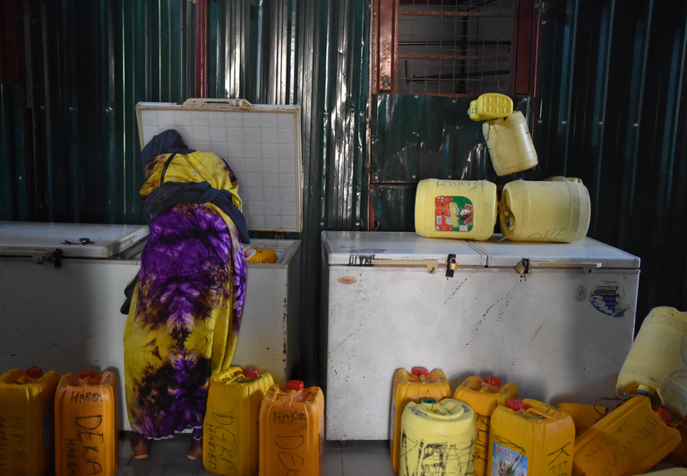 Obwohl die Männer die Kamele besitzen, ist der Handel mit der Milch rein in Frauenhänden. So haben sich in Isiolo drei Frauenkooperativen gebildet, die sich gegenseitig bei ihrem Geschäft unterstützen. Die grösste dieser Kooperativen, die Anolei Camel Milk Cooperative, empfängt täglich rund 3'500 Liter Milch, die am nächsten Morgen ins somalische Quartier Eastleigh in Nairobi gebracht werden. Unterstützt von der Schweizer NGO "Vétérinaires Sans Frontières" konnten sie sich 2018 einen gekühlten Lastwagen leisten, der nun täglich die fünf Stunden Fahrt in die Hauptstadt unternimmt.