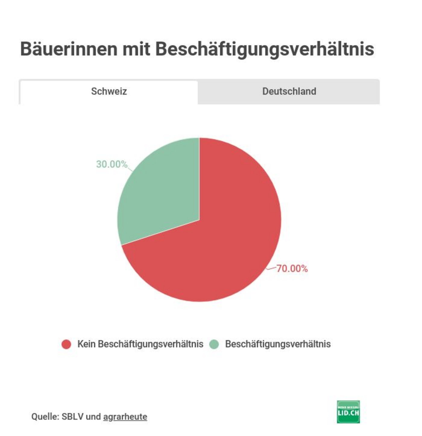 Die Situation in der Schweiz ist im Vergleich zu unserem nordischen Nachbarn Deutschland alles andere als vorbildlich. Wie das Newsportal "agrarheute" im März berichtete, sind in der deutschen Landwirtschaft etwa 341'000 Frauen tätig. Ein Grossteil wird als Familienarbeitskraft angesehen. Vermutlich sei das der Grund, warum 40% der Frauen ohne vertragliches Beschäftigungsverhältnis und ohne festes Gehalt auf den landwirtschaftlichen Betrieben arbeiten würden. Sozialleistungen könnten so keine ausbezahlt werden.