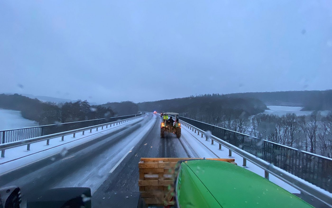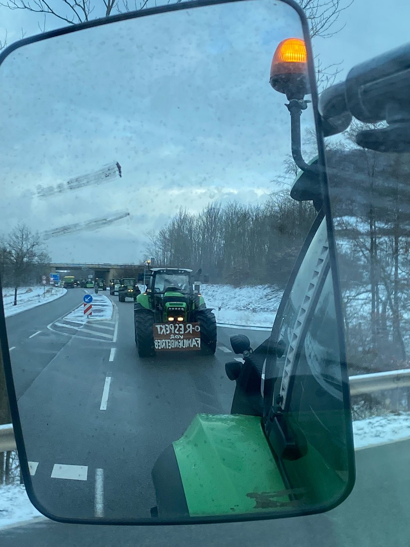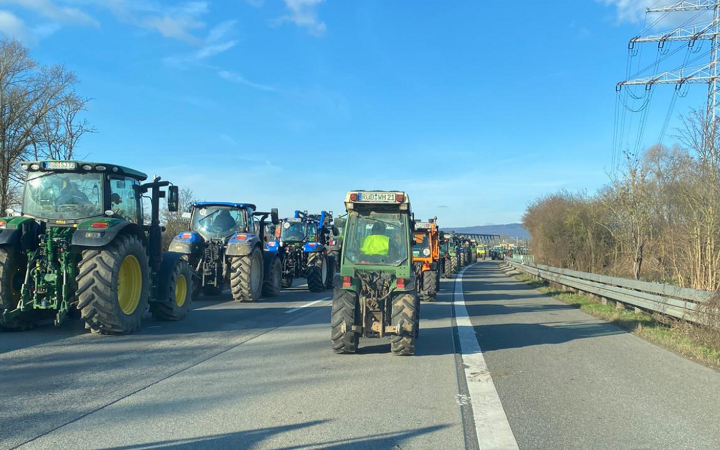 Auf der A81 bei Böblingen waren am 8. Januar 2024 nach Polizeiangaben in einer unangemeldeten Demonstration mehrere Traktoren auf der Autobahn unterwegs. Im Kreis Cloppenburg in Nordwestniedersachsen wurde eine Bundesstrasse von 40 Fahrzeugen blockiert. In Sachsen waren laut Polizei etwa im Raum Dresden einige Autobahnauffahrten nicht nutzbar.