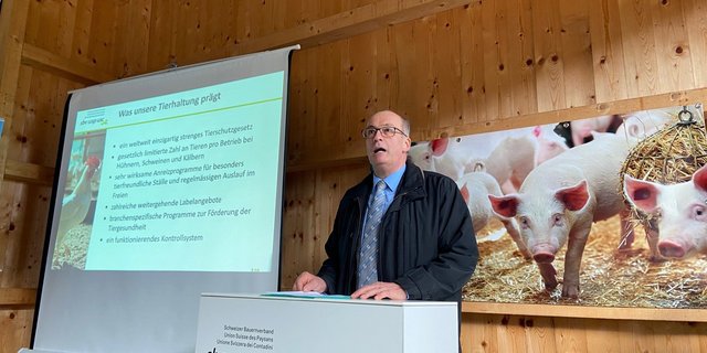 Vor den Medien erklärte SVP-Nationalrat Alois Huber, es müsse ein Netto-Selbstversorgungsgrad von 60 Prozent angestrebt werden, heute stehe man bei lediglich 50 Prozent. Noch 2014 lag dieser bei 64 Prozent, wie Huber sagte. Gleichzeitig hätten die Importe etwa von Weizen und Körnermais stark zugenommen. Dasselbe gelte für die Fleischimporte. Er warnte davor, «den armen Leuten ihr Getreide wegzukaufen», so Huber. Wenn wir nun noch einen Flüchtlingsstrom aus diesen Ländern erhielten, werde die Selbstversorgung noch stärker sinken.