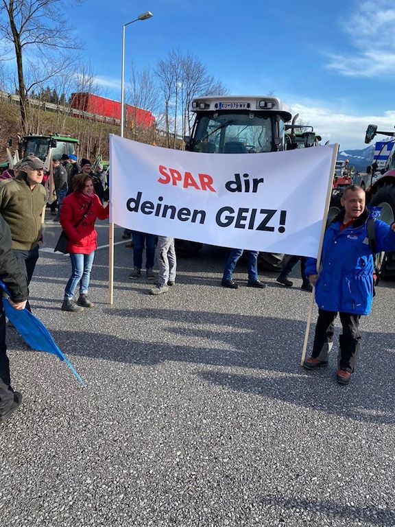 Spar habe sich bei den Preisverhandlungen gegenüber den Bauern «wie ein Feudalherr» aufgeführt so der Österreichische Bauernbund in einer Mitteilung. Generell stellten sich die grossen Handelsriesen mit ihrem Verhalten gegen heimische Bauernfamilien und somit gegen die nachhaltigste Form der Landwirtschaft, heisst es weiter. Aus diesem Grund protestieren die Landwirte heute in ganz Österreich. Die Demonstrationen werden vom Bauernbund im Zusammenarbeit mit den Landesbauernbünden organisiert.