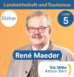 Ich engagiere mich für das Festigen der Rahmenbedingungen zur Erfüllung der Ernährungssicherheit im Kanton Bern. Kulturland ist zu schützen und als Produktionsfläche zu nutzen. Die Bauernfamilien sollen ihren Auftrag zur Erhaltung der Ernährungssicherheit ohne zusätzliche Auflagen und Einschränkungen erfüllen können.