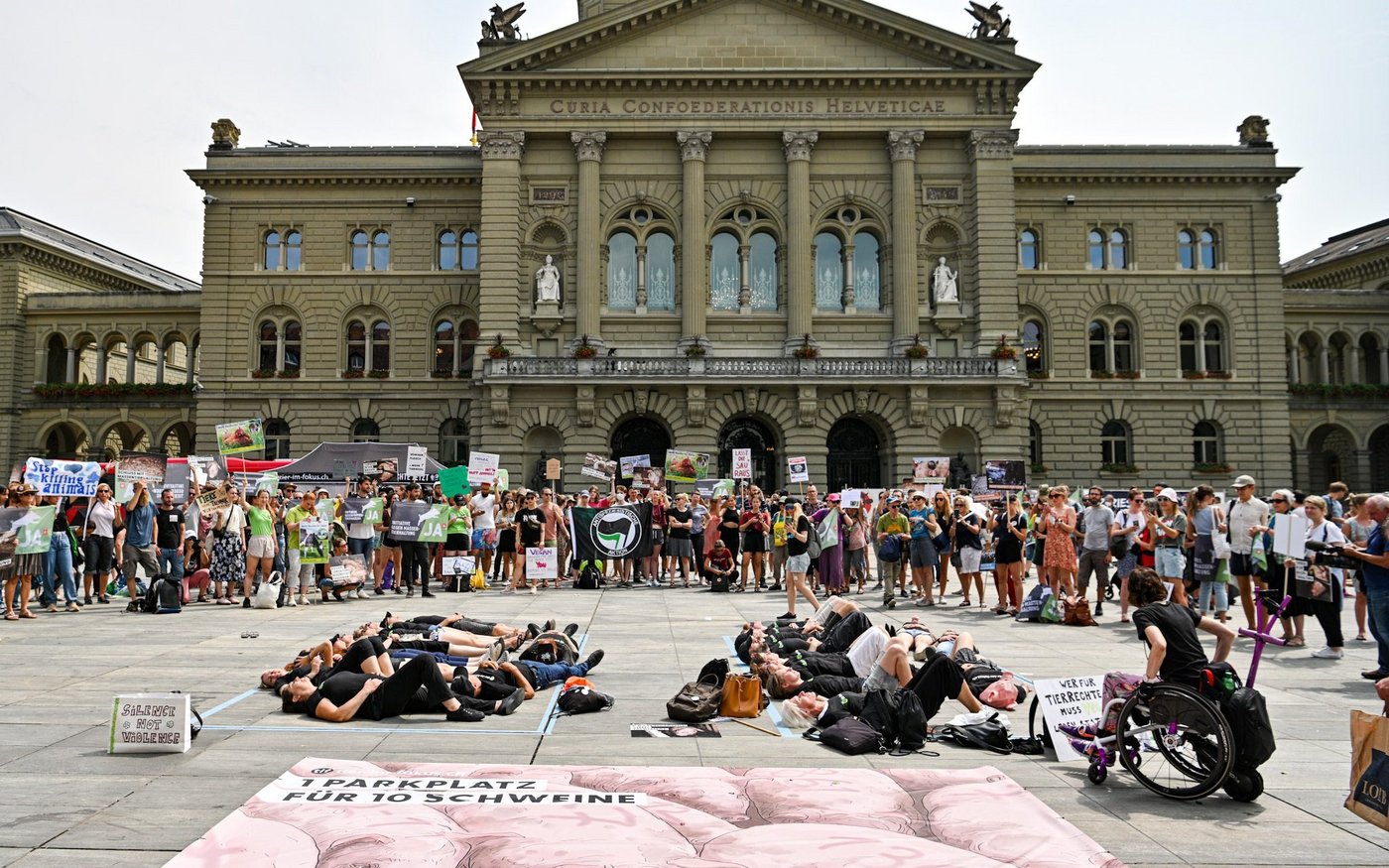 Mit der Demonstration wollte die Organisation "Tier im Fokus" die Abstimmungskampf gegen die Massentierhaltung unterstützen. Die Teilnehmer skandierten Slogans zu Trommelklängen und hielten Transparente hoch, wie eine Korrespondentin der Nachrichtenagentur Keystone-SDA meldete.