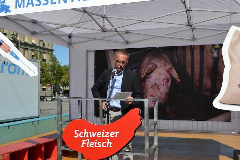 Als Vorstandsmitglied von Tier im Recht erläuterte Daniel Jositsch (SP-Ständerat Zürich) den gesetzlichen Rahmen. Das Recht der Tiere auf Würde müsste laut Verfassung gegenüber den wirtschaftlichen Interessen abgewägt werden. Das werde heute nicht gemacht. "Die heutige Gesetzgebung zieht die wirtschaftlichen Interessen vor und widerspricht so der Verfassung", so der Politiker.