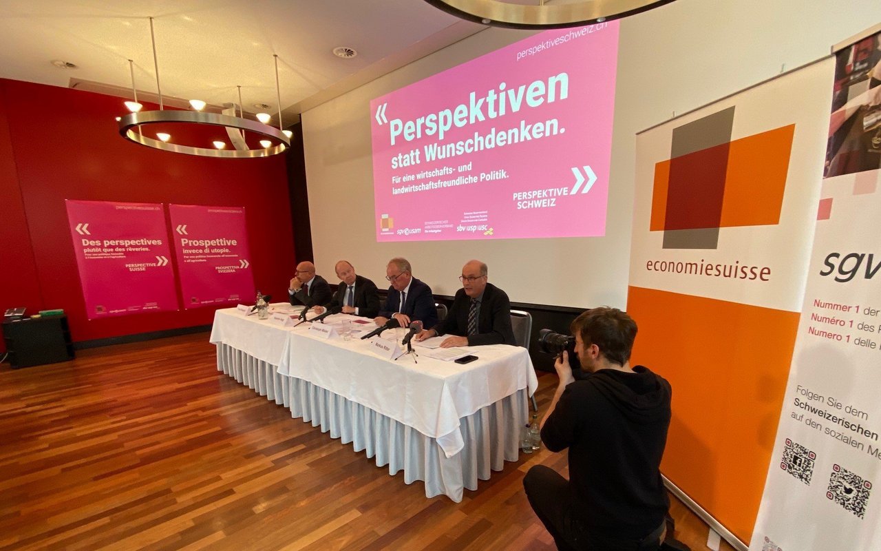 Das Ja zur AHV-Reform, das knappe Nein zur Verrechnungssteuer-Abschaffung und das klare Nein zur Massentierhaltungs-Initiative werten die Verbände als Erfolg und lancieren deshalb nun eine gemeinsame Kampagne im Hinblick auf die Parlamentswahlen vom 22. Oktober 2023. Diese steht unter dem Motto «Perspektiven statt Wunschdenken – Für eine wirtschafts- und landwirtschaftsfreundliche Politik», zusammengefasst «Perspektive Schweiz».