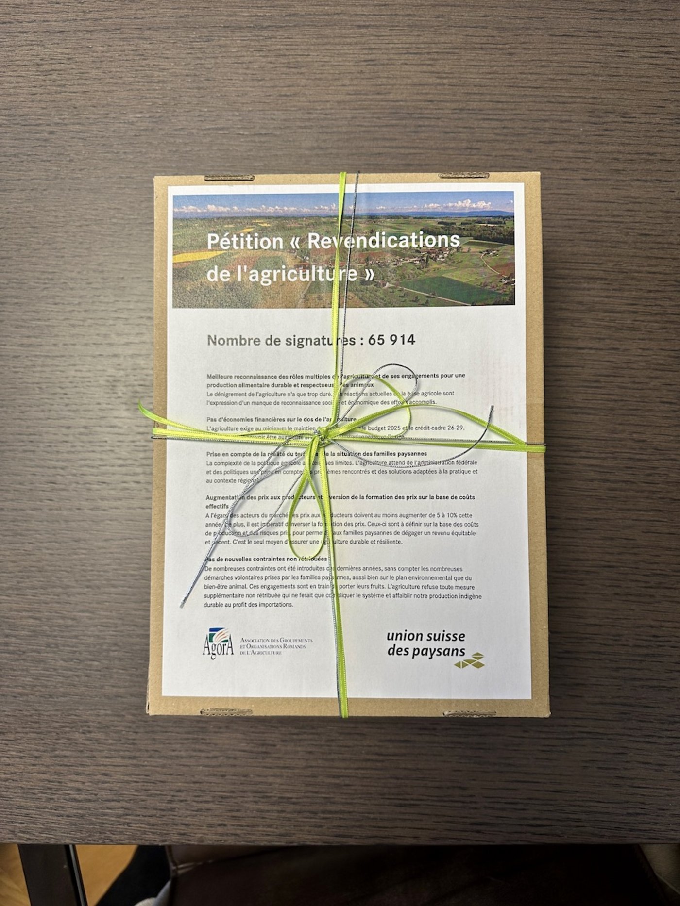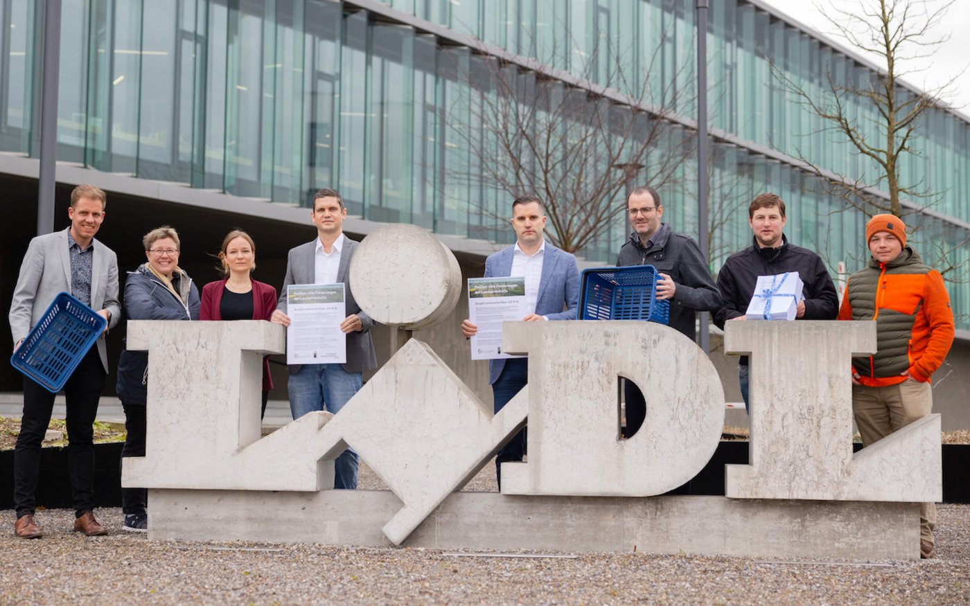 «Höre die Hilfeschreie vom Land und unterstütze unsere Landwirtschaft in ihren Forderungen nach besseren Bedingungen für die Bauernfamilien» hiess es in der Petition des Schweizer Bauernverbands (SBVs), der Westschweizer Bauernvereinigung Agora und der Junglandwirte. Innert weniger Tage haben über 65'000 Menschen online für eine rentable Landwirtschaft unterschrieben, freut sich der SBV in einer Mitteilung. Heute fand die Übergabe der Petition statt – und zwar in fünffacher Ausführung.