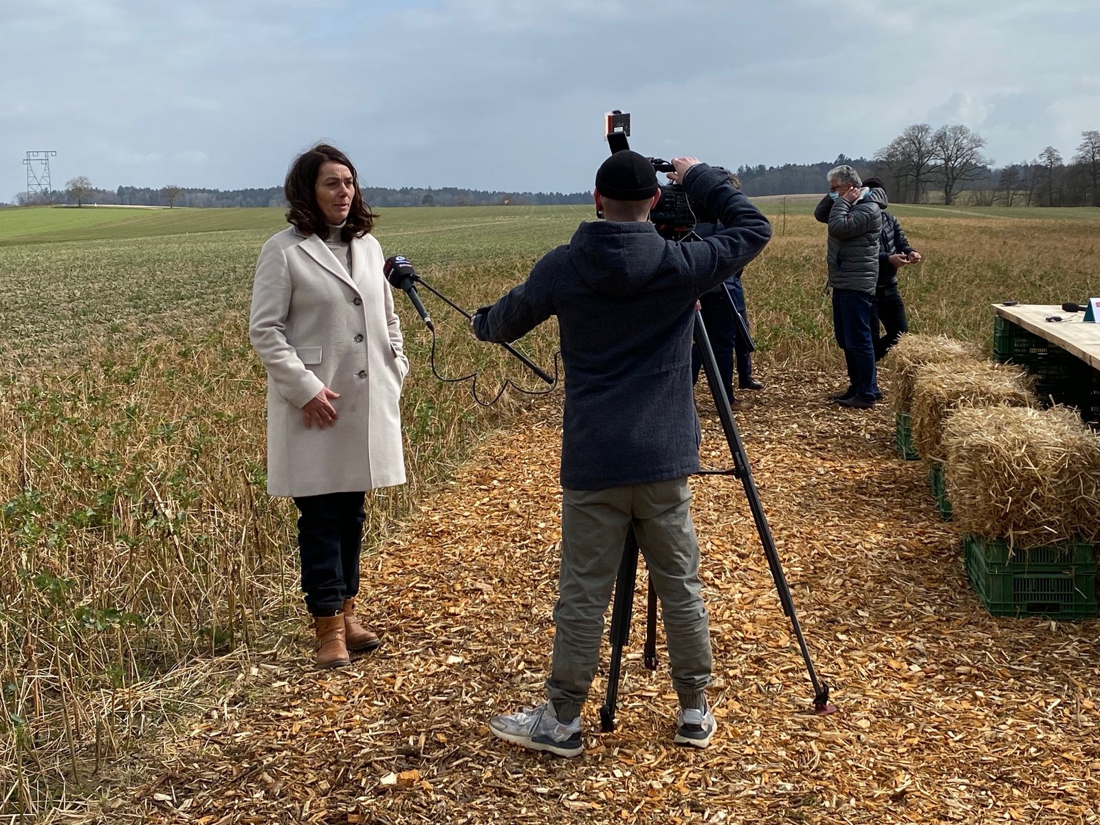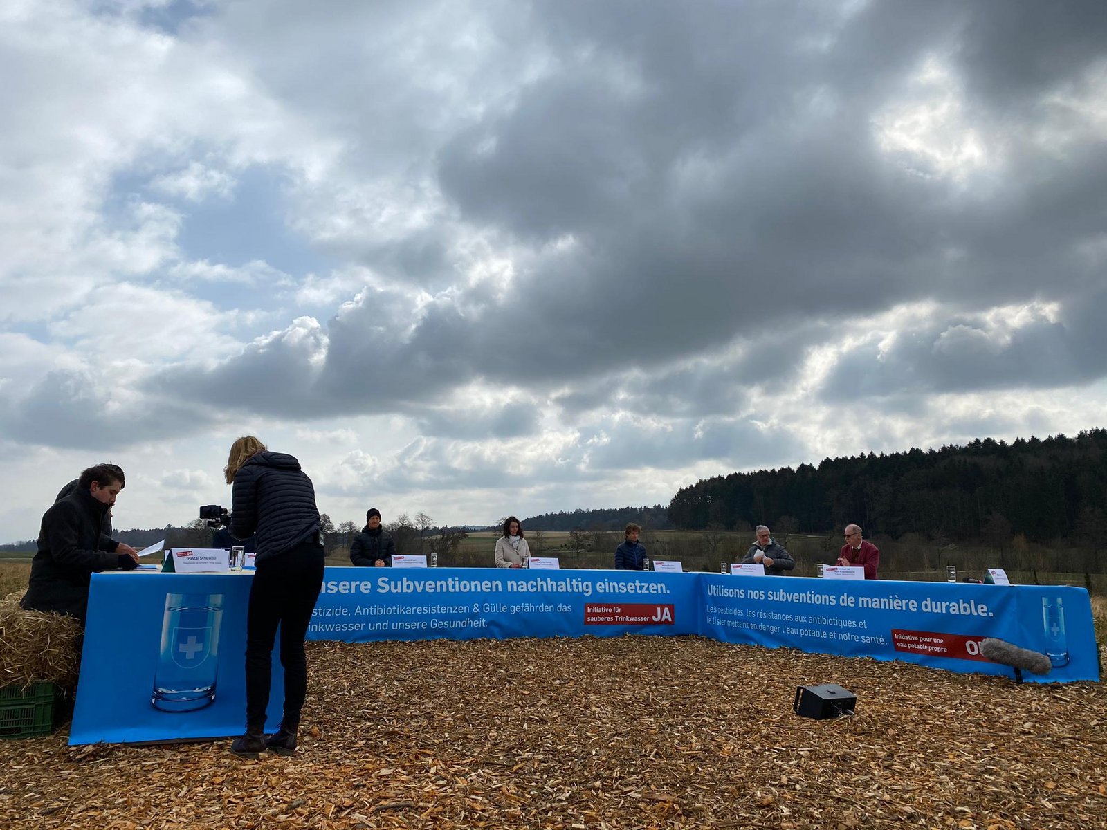 Ein offenes Feld im bernischen Grossaffoltern. Strohballen als Sitzgelegenheiten. Kühler Wind, eine Kaffeemaschine, die wohl wegen Corona wenig genutzt wurde und «garantiert pestizidfreie Gipfeli» von Gipfelikönig Fredy Hiestand. Ziemlich viele interessierte Journalisten und bestimmt noch einige mehr, die per Livestream dabei waren. Heute Montagmorgen lancierte das Initiativkomitee der Trinkwasser-Initiative seine Abstimmungskampagne. Am 13. Juni kommt die Initiative mit viel agrarpolitischem Zündstoff vors Volk.