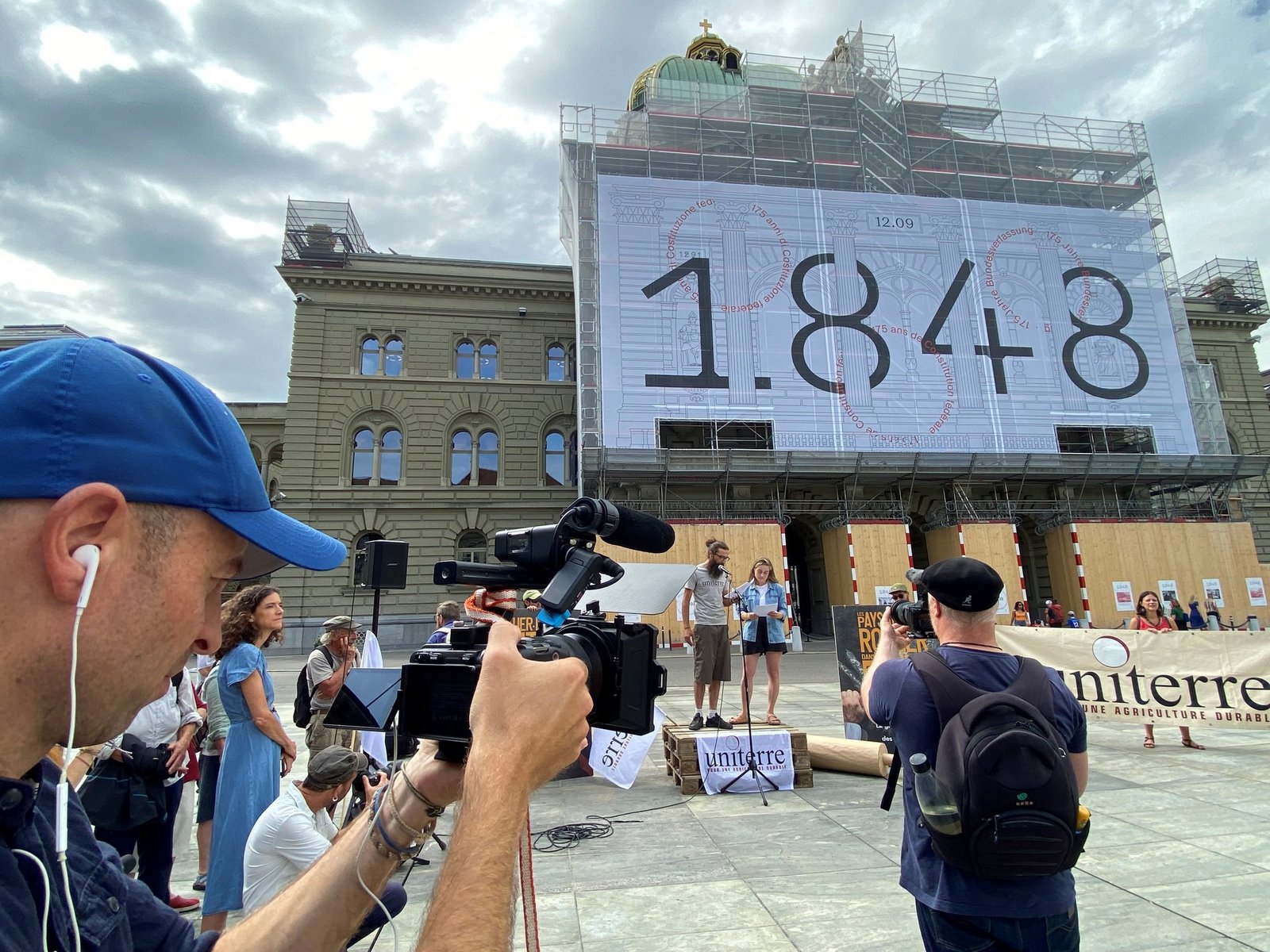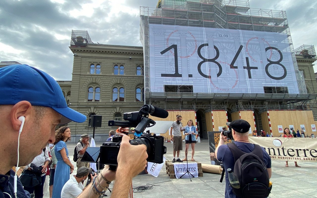 Referate hielten vor dem Bundeshaus unter anderem Anna Hersberger von der Reformbäckerei im bernischen Vechigen, Stephan Tschirren von der Kleinbauernvereinigung und die Nationalrätin Isabelle Pasquier.