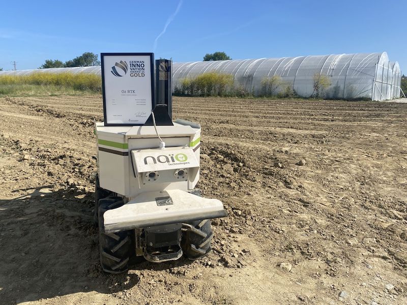 Oz ist ein vergleichsweise kleiner Roboter und auch speziell für kleine Gemüsebetriebe konzipiert. Im Gegensatz zu seinen Vorgängern ist die neuste Version des Geräts aus dem Hause Naïo Technologies mit einem GPS-RTK-Navigationssystem ausgerüstet und kann daher mehr, als nur kameragesteuert Unkraut zu hacken. Als mögliche Einsatzgebiete listet der German Innovation Award die Bodenberabeitung, Eggen, Hacken, Furchenziehen, Säen, Pflanzen, Jäten, Dämmen oder Transportieren auf.
