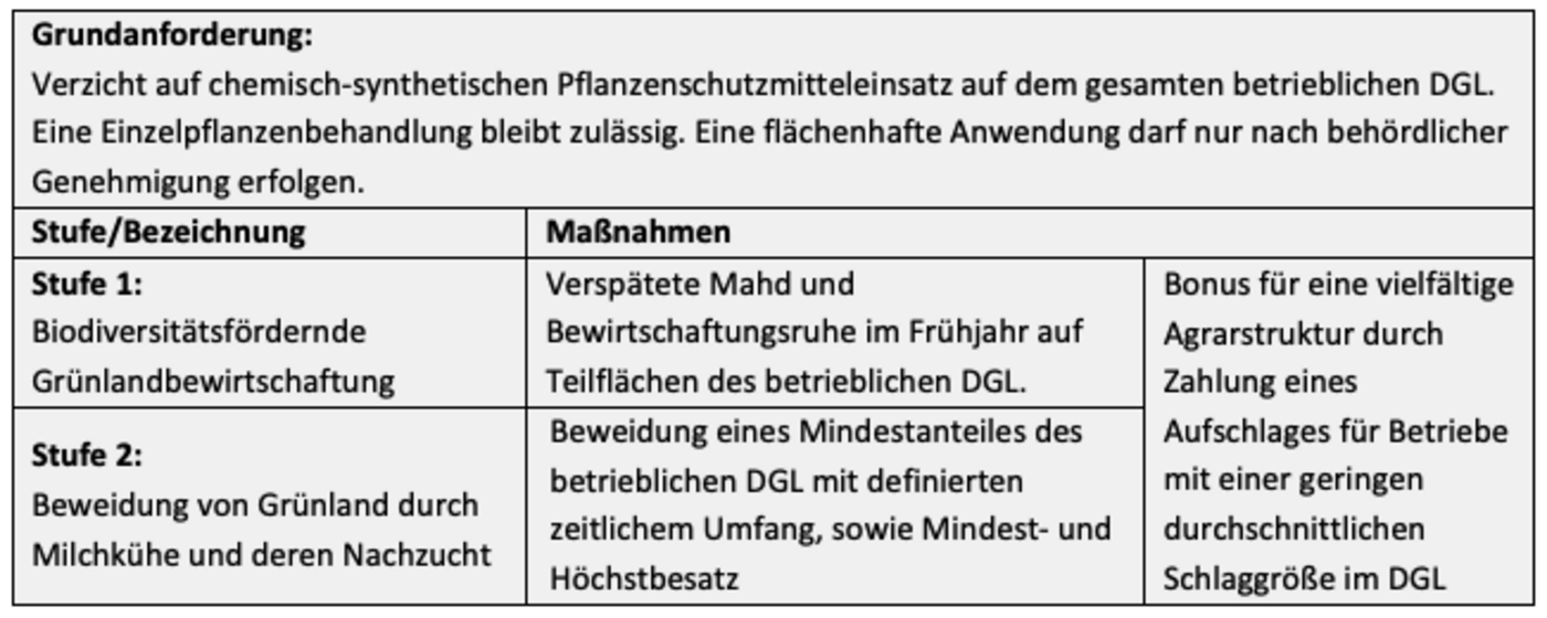 In einer gemeinsamen Stellungnahme haben die ABL, Greenpeace sowie verschiedene weitere Verbände und Organisationen (darunter der Bundesverband Deutscher Milchviehhalter) ausgeführt, wie sie sich eine Prämie für die «vielfältige Grünlandnutzung inklusive Weidehaltung von Milchkühen und deren Nachzucht» vorstellen:
