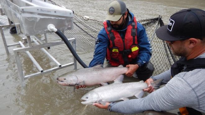 Für einen Transport der Fische per Helikopter wird derzeit ein Teich angelegt, in den sie mithilfe von Dämmen geleitet werden sollen, wie der TV-Sender CBC News berichtete. Anschliessend sollen sie dann mit Netzen in sauerstoffhaltige Aluminiumbehälter gesetzt und dann in Hubschrauber verfrachtet werden.