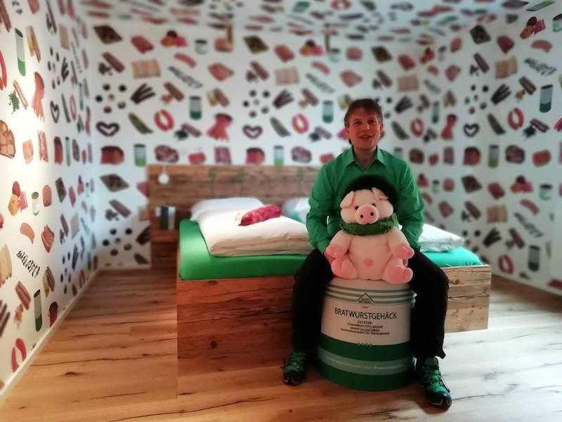 Metzger Claus Böbel eröffnete neben seiner Metzgerei ein Hotel ganz unter dem Motto Wurst, wie der "Tagesspiegel" berichtet.
