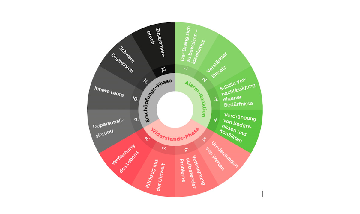 Wer immer wieder in dasselbe Muster zurückfällt, ist im Stress. Und diesem Hamsterrad gilt es zu entfliehen. Das «Burnout-Rad» von Rolf Hess zeigt, welches die ersten Alarmsignale sind. Wer sich noch im grünen Bereich findet, kann mit einem guten Ausgleich rasch wieder zurück zur Gesundheit finden. Bereits kleine Veränderungen im Alltag bringen Entspannung.