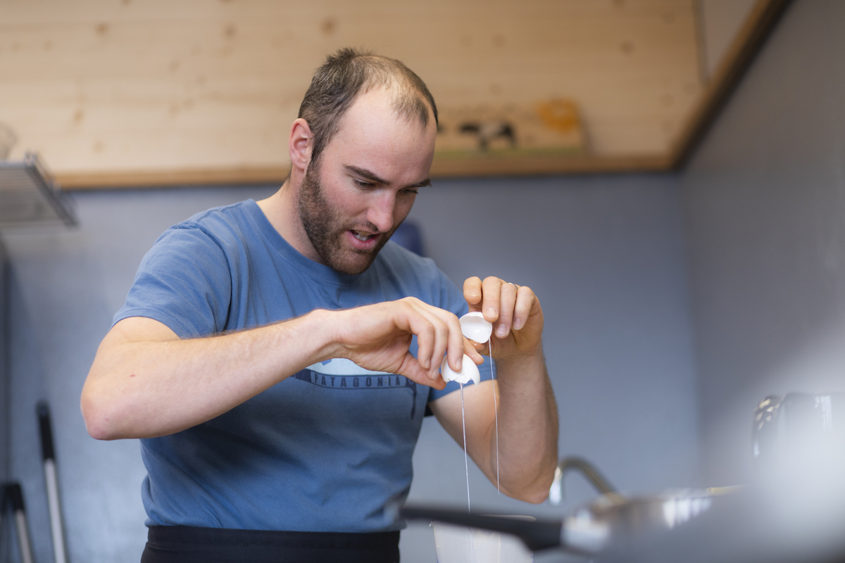 «Wir arbeiten gut zusammen», sagt Nadja Santschi. «Obwohl oder vielleicht gerade weil wir in der Küche so unterschiedlich ans Werk gehen: Simon ist als Käser sehr organisiert und ordentlich, ich bin eher kreativ-chaotisch.»
