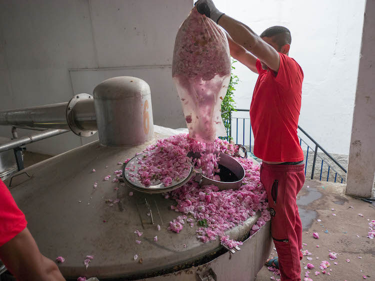Deshalb betreiben sie seit zwei Jahren gleich neben der Destillerie das Hotel Natherico. In einer Art Erlebnis-Tourismus führen sie Gäste aus der ganzen Welt in die Geheimnisse der Rosenöl-Herstellung ein, inklusive Besuch auf den Feldern, wo man gleich selbst Rosenblütenblätter ernten kann.