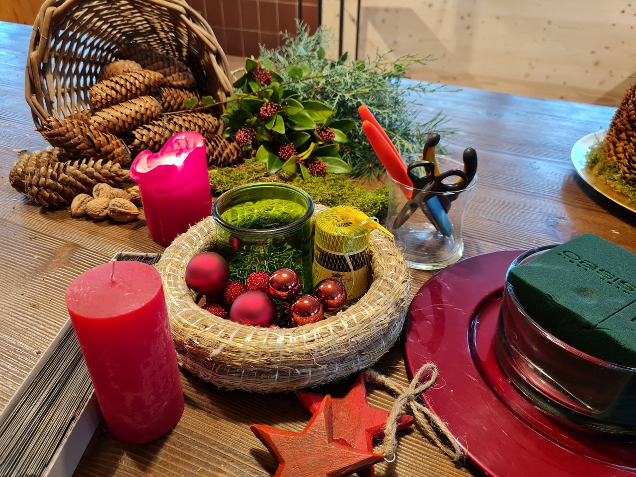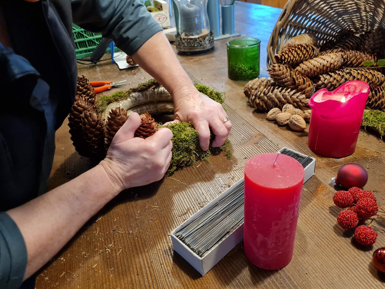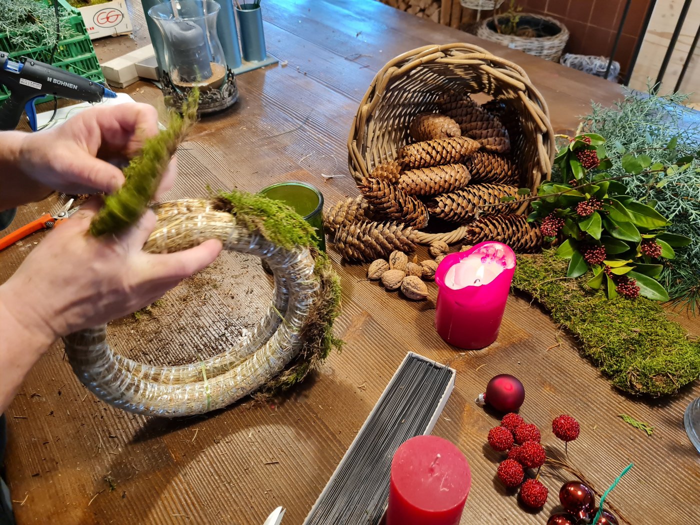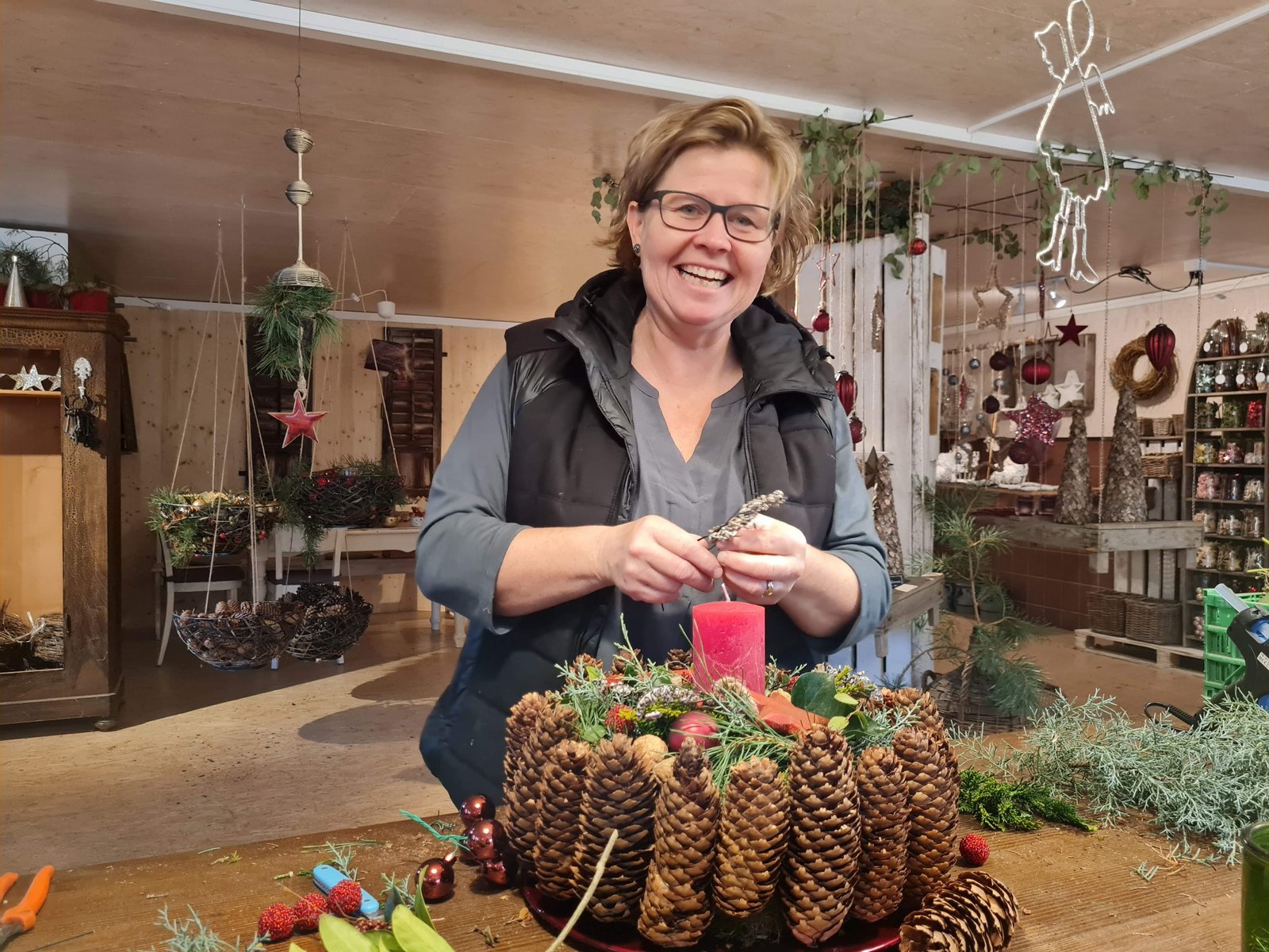 [IMG 9] Jsabelle Hodel gibt ihr Wissen und ihre Ideen sehr gerne weiter. Es macht ihr Spass, anderen eine Freude zu bereiten. In ihrem Atelier auf dem Hof Zuswil 6 in Kottwil bietet sie übers ganze Jahr verschiedene Kurse an. Schon bald kommt der Advent. Noch keine Idee für ein Adventsgesteck? Jsabelle Hodel zeigt, wie sich mit wenig Material, das noch speziell besorgt werden muss, einfach ein Gesteck herstellen…