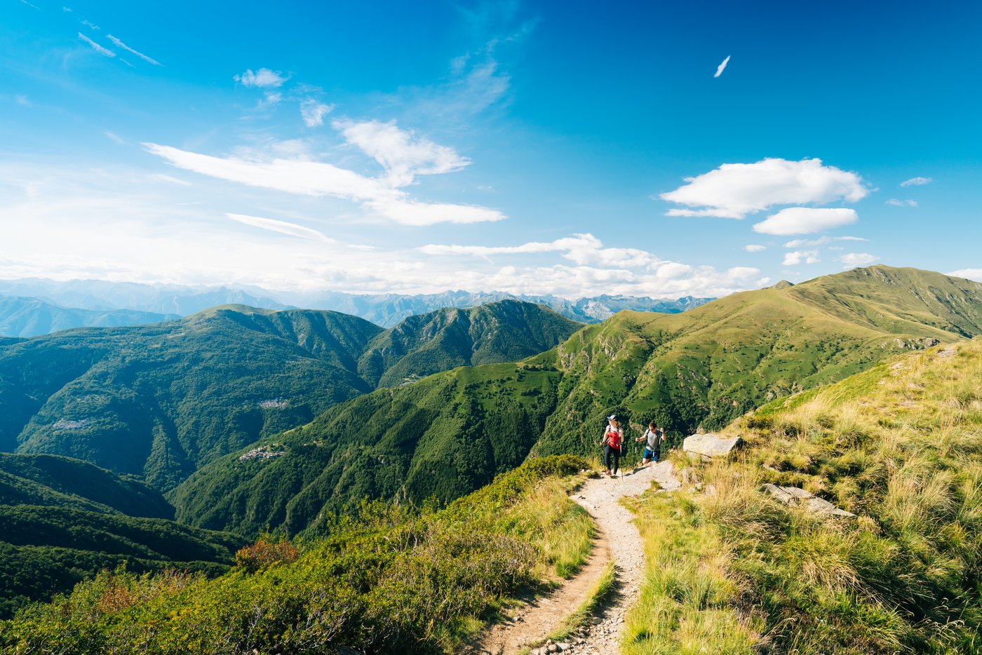 4366 Kilometer Wanderwege gibt es im Tessin, 70 Berghütten und über 130 Bergseen. Die Auswahl an Ausflügen in der Natur ist also immens. Der eindrücklichste Rundwanderweg ist wohl der «Giro del Ponte Tibetano» mit Ausgangspunkt Monte Carasso. Während der 3,5-stündigen und gut 8 km langen Wanderung überquert man eine der längsten Hängebrücken der Schweiz und wandert durch Kastanienwälder und Weinberge. Ein weiteres Highlight ist der Höhenweg vom Monte Tamaro zum Monte Lema. Ausgangspunkt ist Rivera, dann folgt der 12 km lange Höhenweg über Bergkämme nach Miglieglia. Die Wanderung bietet eine grosszügige Aussicht auf den Lago Maggiore, das Centovalli, Verzasca, Vallemaggia, Locarno und Bellinzona. Sogar die Gipfel des Monte Rosa und des Matterhorns sieht man bei guter Sicht.