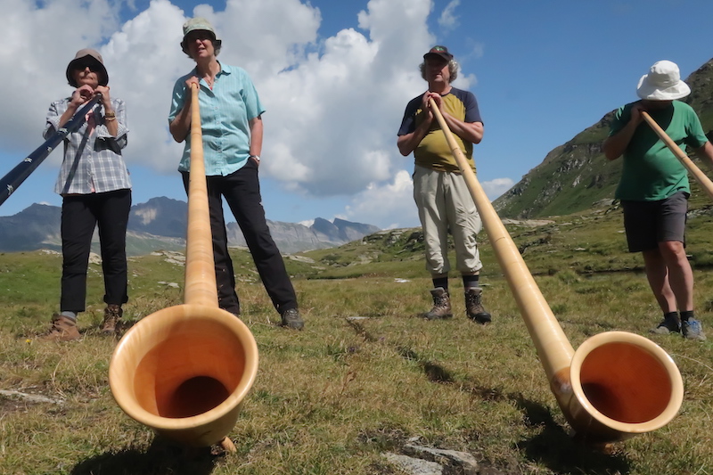 Diese Bühne muss man sich als Alphornbläserin und -bläser erst einmal verdienen: Der grün-blaue Guraletschsee schmiegt sich spiegelglatt in seine Mulde. Die imposante Felswand dahinter erzeugt ein grandioses Echo und ist verantwortlich für eine wunderbare Akustik. Darüber thront mächtig das Fanellhorn. Der Wind liebkost das Wollgras im Moor und trägt dezent das Rauschen des Bachs und das Gebimmel der Kuhglocken…
