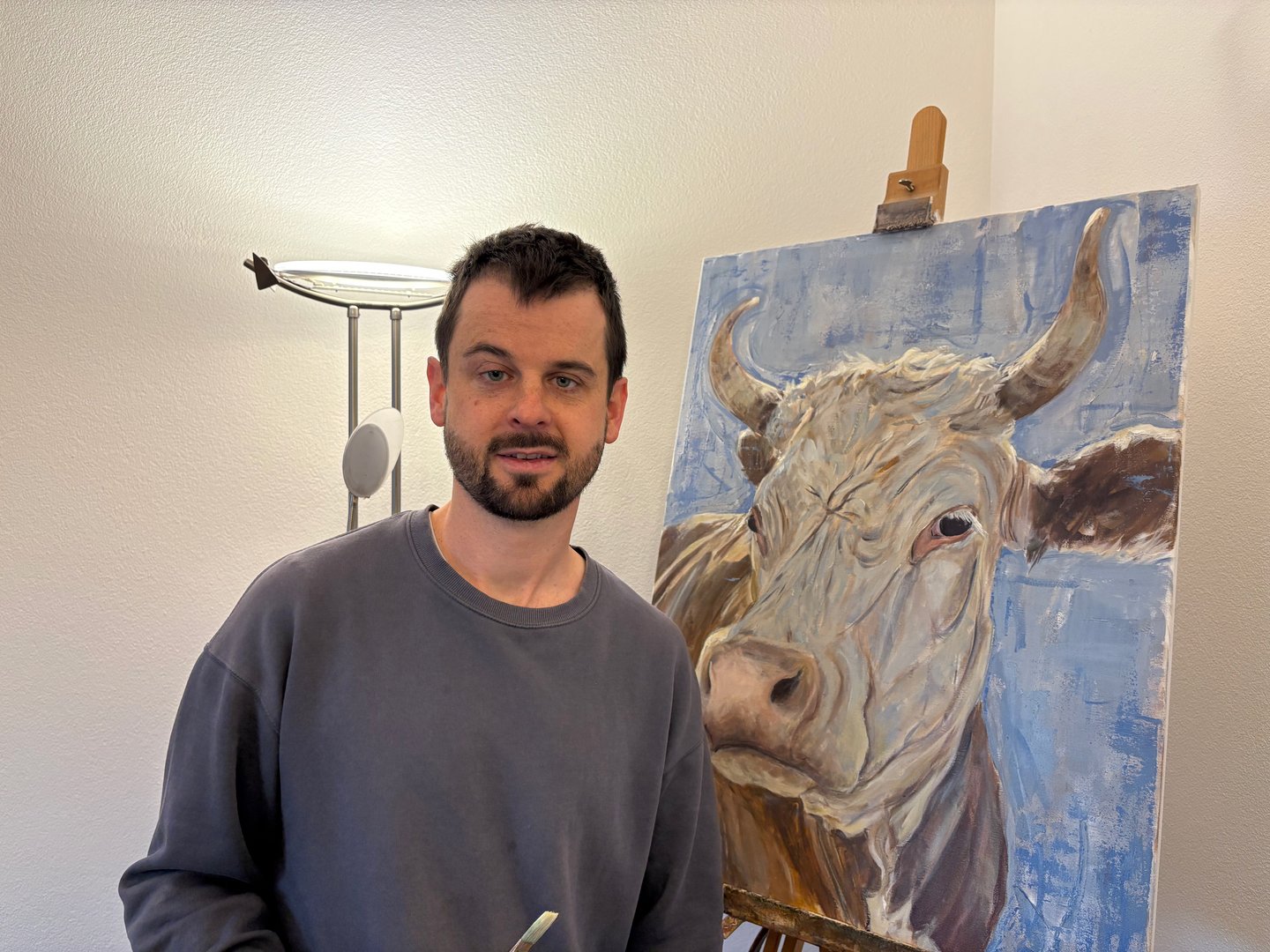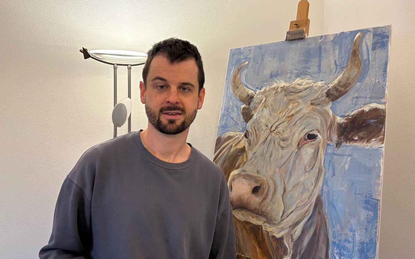 «Am liebsten male ich Simmentaler, schöne, kräftige Kühe, immer mit Hörnern», sagt Urs Aebersold. Er mag die Ockertöne. Überhaupt sind Kühe die Lieblingsmotive des 36-Jährigen, der tagsüber als Ladenleiter den Landi-Laden Thierachern führt und nachts gerne den Pinsel schwingt. Oder abends, sobald die Kinder schlafen, oder in den Ferien: «Aber dann hat natürlich die Familie Vorrang.» Aebersold malt aber auch gerne…