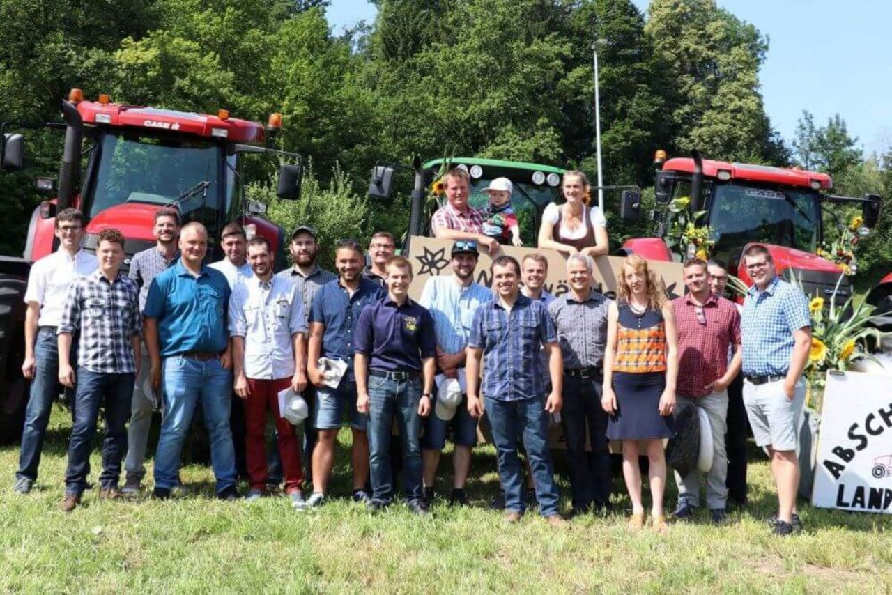 Traditionellerweise fuhr der Berufsnachwuchs zur Schlussfeier im Traktorenkorso vor, vom Oldtimer über Mähdrescher bis zum Pferdefuhrwerk bewiesen sie ihre Vielseitigkeit.
