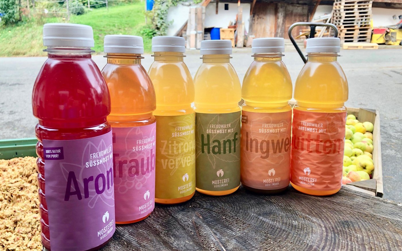 Das Mostobst, das auf dem Hofplatz der Mosterei Hürlimann im zürcherischen Freudwil auf seine Verarbeitung wartet, ist bunt, verschieden gross und im Geschmack sehr unterschiedlich. Doch nicht nur das Rohprodukt für den Süssmost fällt durch seine Verschiedenartigkeit auf, auch die Etiketten auf den Halbliter-Pet-Flaschen sind farbenfroh. Wie die Flaschen so nebeneinander stehen, erinnern sie an einen Regenbogen. [I…