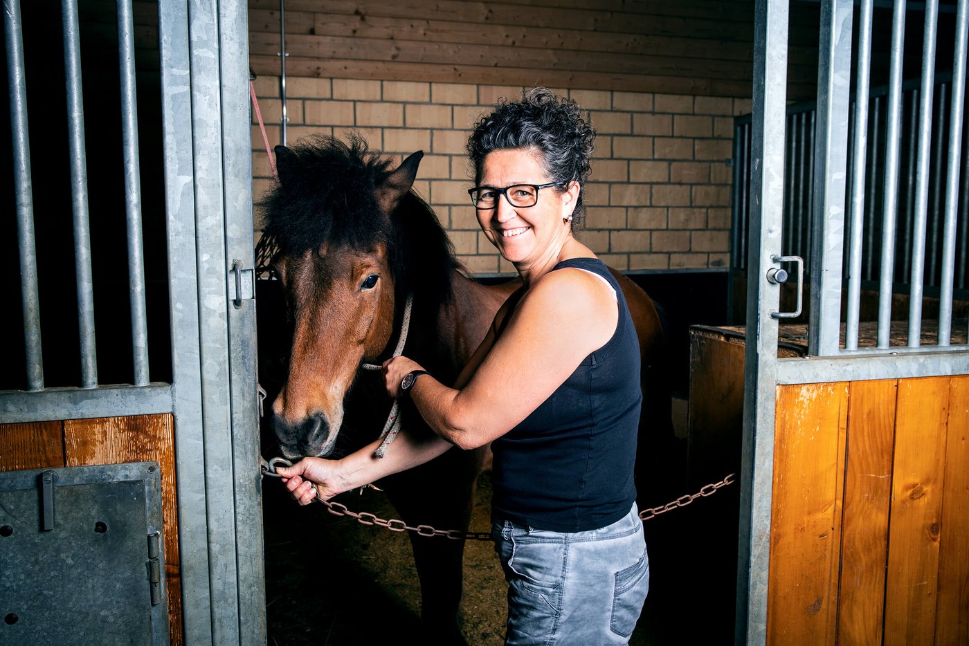 Zum Arbeitsalltag von Anita Estermann gehören viele verschiedene Tiere. Sie bezeichnet sich als grosse Pferdeliebhaberin und sorgt als Stellvertretung auch für einige Islandpferde. (Bild Ueli Christoffel/SRF)