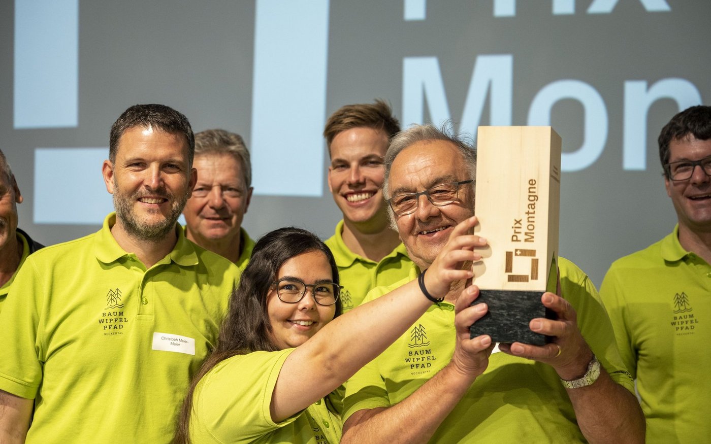 Auch der Publikumspreis ging in diesem Jahr in die Ostschweiz. Gewonnen hat ihn der Baumwipfelpfad Neckertal mit der Mehrheit der rund 6500 Stimmen in der Online-Abstimmung. Der erste Baumwipfelpfad der Schweiz steht in Mogelsberg und sei ein Paradebeispiel dafür, «wie man den sanften Tourismus fördern und periphere Regionen nachhaltig beleben kann», wird Florian Knapp von der Schweizerischen Mobiliar Genossenschaft in der Mitteilung zitiert. Der Publikumspreis ist mit 20'000 Franken dotiert und wird von der Schweizerischen Mobiliar Genossenschaft gesponsert. [IMG 2]