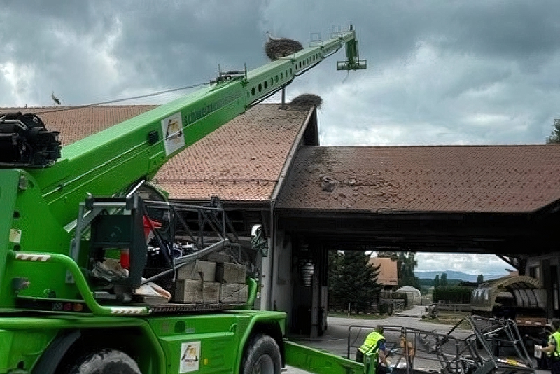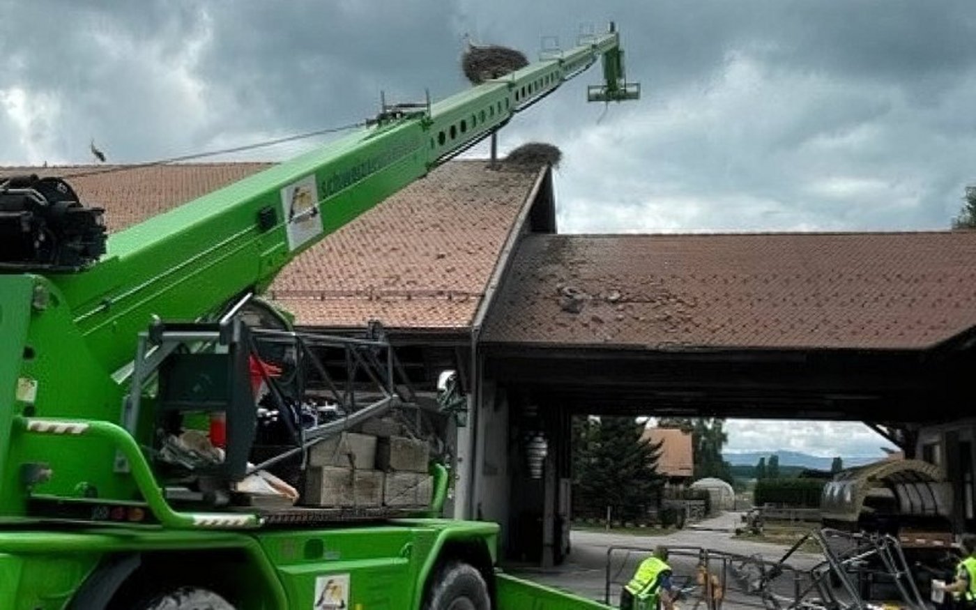 Die Betroffenen waren dabei, Störche zu zählen als der Unfall passierte. Warum die Hebebühne sich von ihrem Arm löste, war zunächst unklar und wurde abgeklärt.