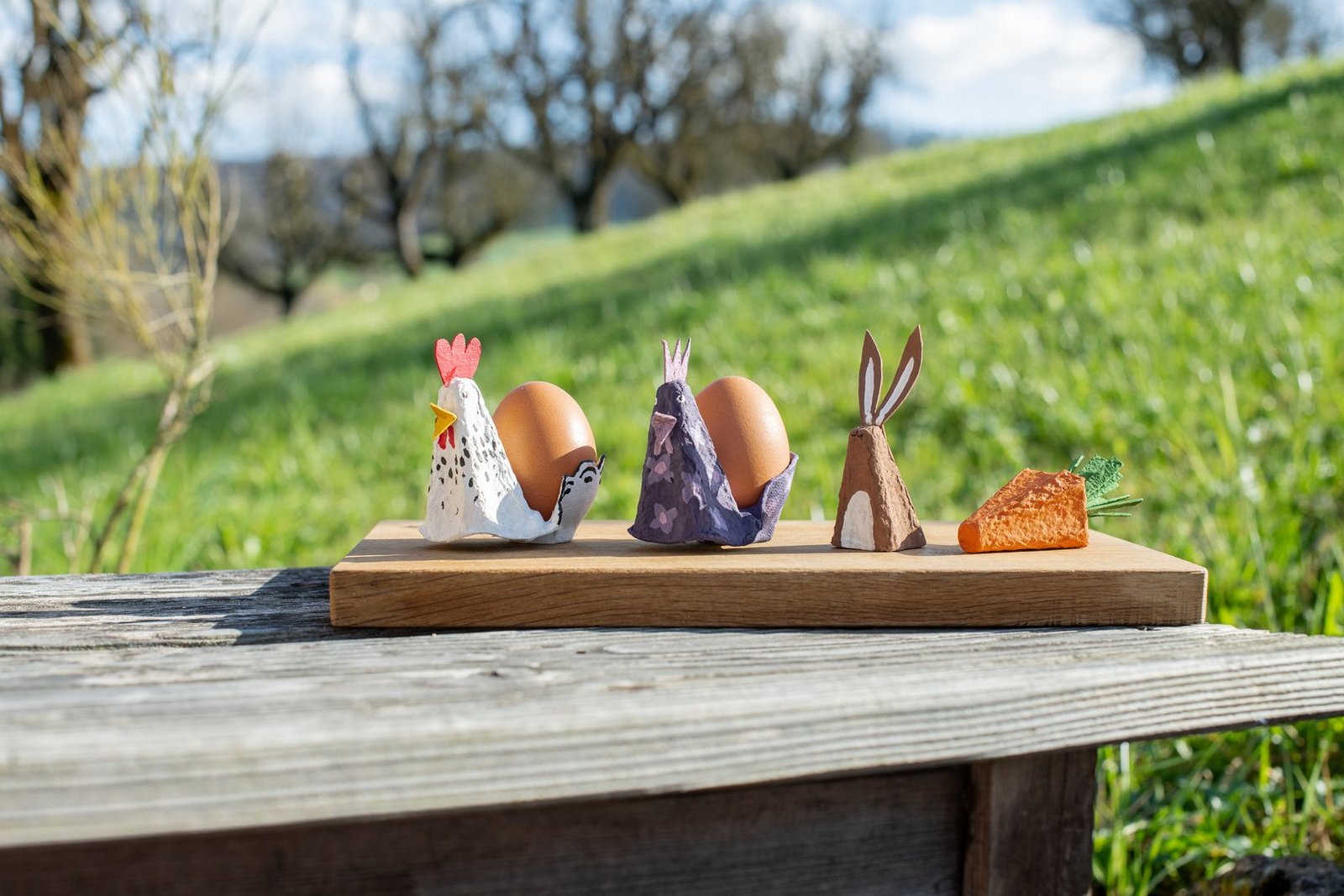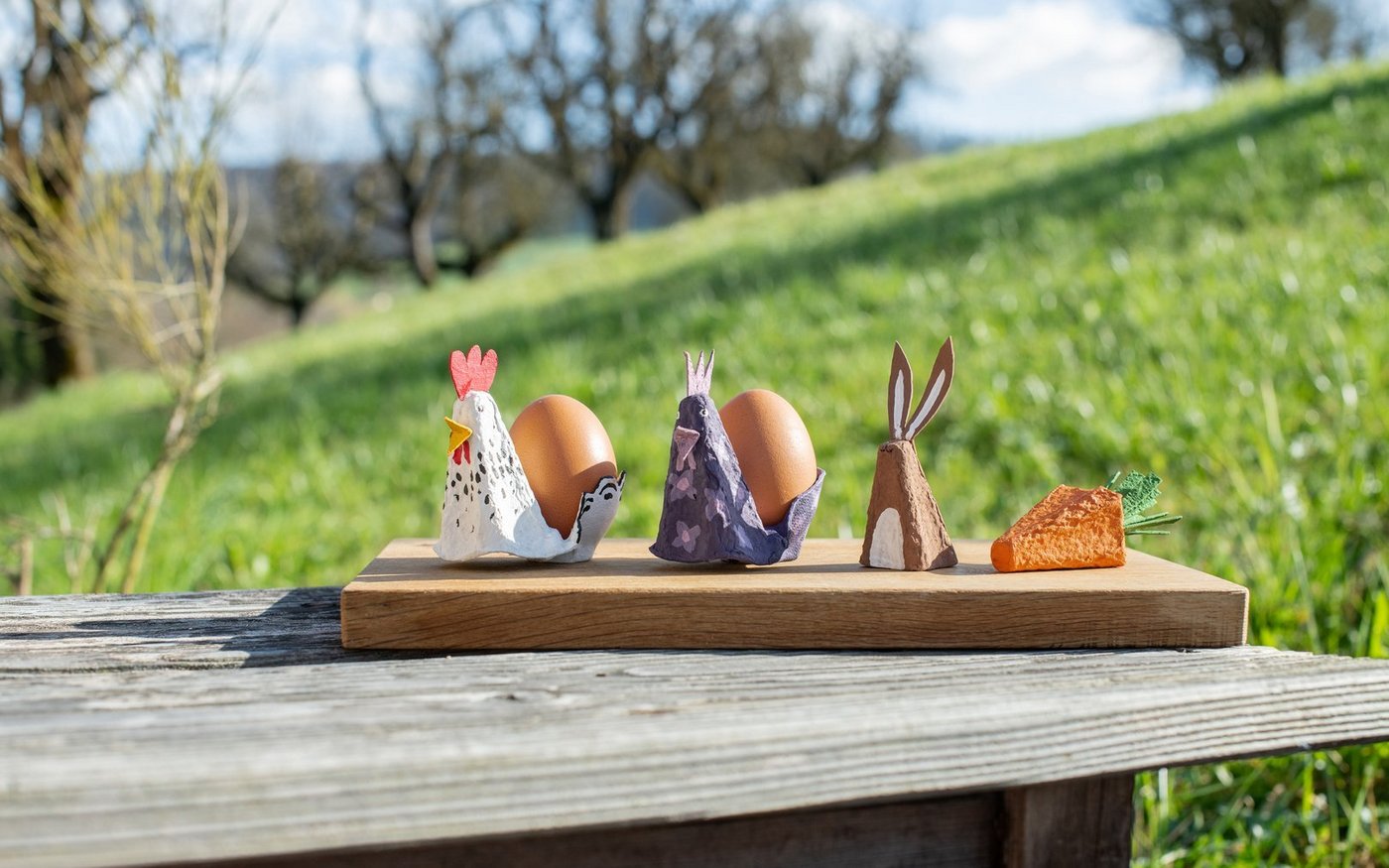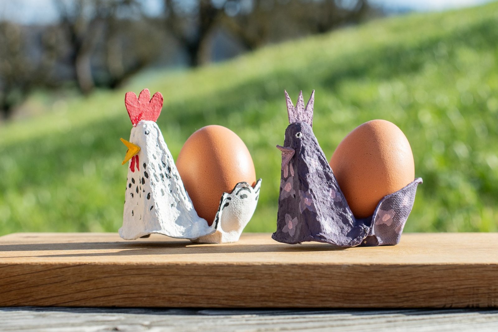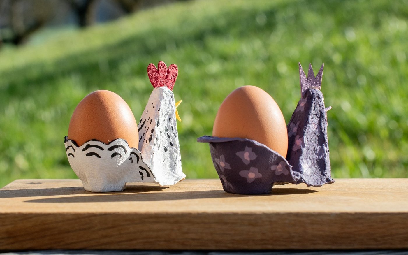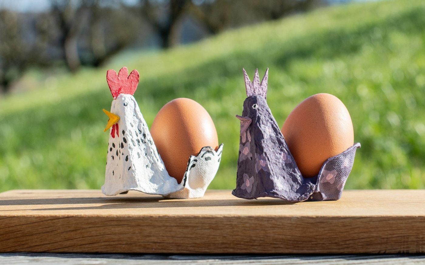 Aufpeppen und Wiederverwenden sind voll im Trend. Warum also nicht die Eierkartons wiederverwenden, in denen die Eier für Ostern nach Hause getragen wurden? Hühner-Eierbecher als Hingucker Für jedes Familienmitglied einen eigenen lustigen Eierbecher gestalten – ob realistisch bemalt oder in der Lieblingsfarbe, der Kreativität sind keine Grenzen gesetzt. Aus einem Eierkarton das Eckstück mitsamt dem Zwischenhöcker…