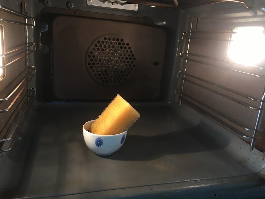 Natron bildet zusammen mit dem Wasser eine basische Lösung. So verleiht das weisse Pulver nicht nur Laugenbrötchen eine feine Kruste, sondern kann auch Fett und Eiweiss lösen. Je nach Quelle gibt man noch einen Teelöffel Salz bei. Der dürfte sich im wenigen Wasser kaum lösen und daher einen Peeling-Effekt haben. Die Mischung im Ofen verteilen, Türe zu und je nach Verschmutzungsgrad zwischen einer halben und zwei Stunden einwirken lassen. Dann mit einem Lappen abwaschen.