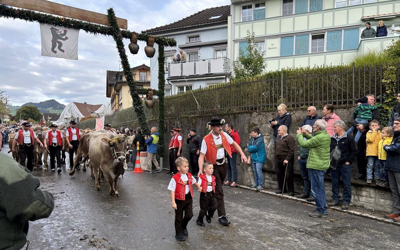 Nicht nur das morgendliche «Übere fahre» stiess auf Begeisterung, sondern auch das «Abloo» um 16 Uhr. Genauso viele Zuschauer(innen) wie am Vormittag säumten die Strasse und feierten die Sennenfamilien, die mit ihren Kühen nach Hause eilten.