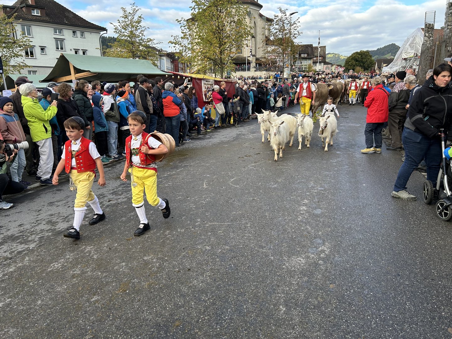 Voran gingen drei Kühe, die das Senntum trugen, dann folgten die Sennen mit den gelben Hosen, die mit Jodelliedern die unzähligen Besucher(innen) am Strassenrand erfreuten. Zuhinterst folgte der Züchter traditionsgemäss gekleidet mit brauner Hose und einem weissen Hemd. Auch Appenzeller Geissen waren dabei, begleitet von Geissenmeitli und Geissenbuben.