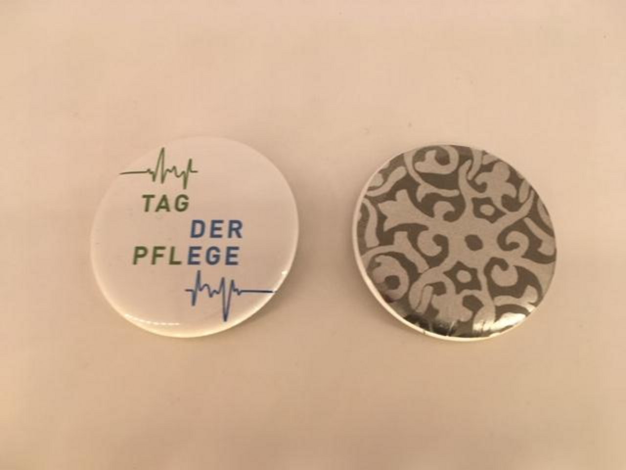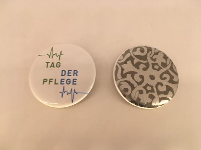 Der Tag der Pflege ist vorbei – und die Brosche bereit um in neuem Kleid Schals an Ort und Stelle zu halten, oder einem unifarbenen Pullover etwas Muster zu geben.