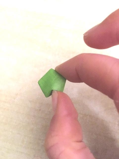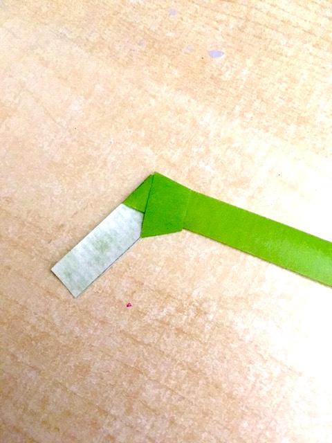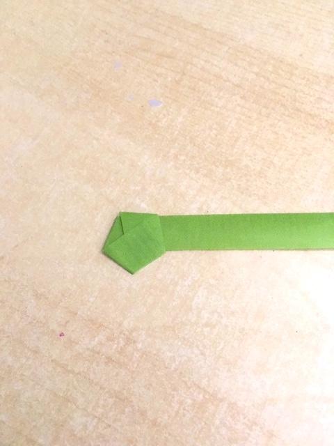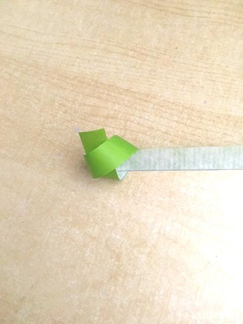 5. Das längere Ende mit Leimstift betreichen, ebenfalls umfalten und den Kanten folgend um den Knoten wickeln.