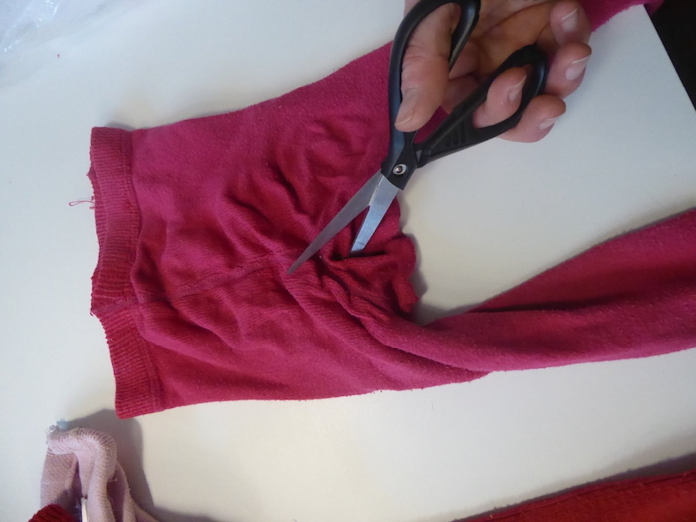 - Bei allen Strumpfhosen die Beine mit Füllwatte ausstopfen, ungefähr bis zum Knie.