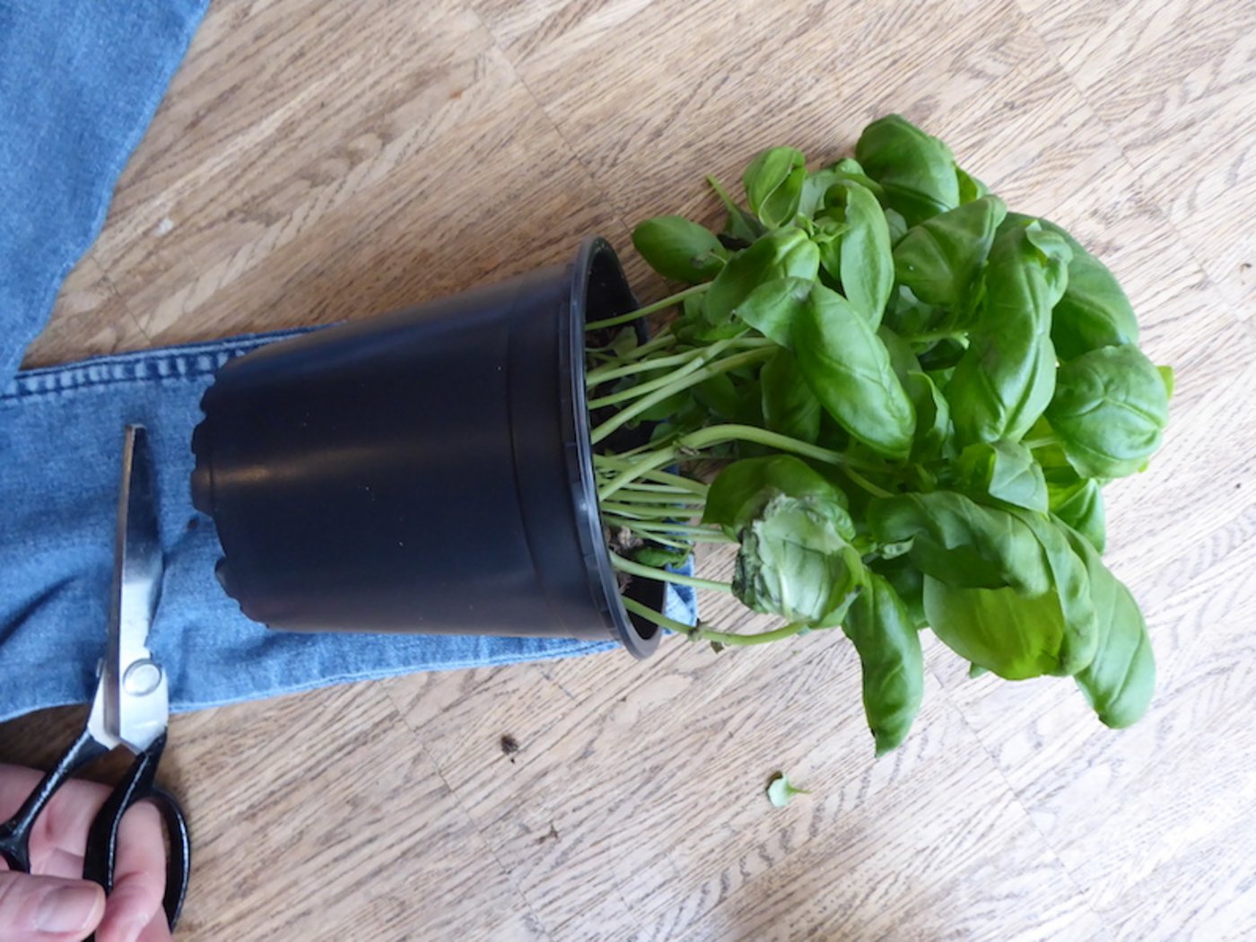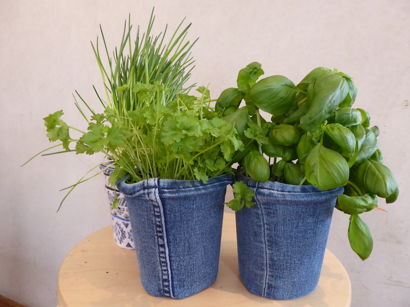 - Eine alte Hose wählen, deren Hosenbeindurchmesser mit dem Durchmesser des Pflanzentopfs einigermassen übereinstimmt.