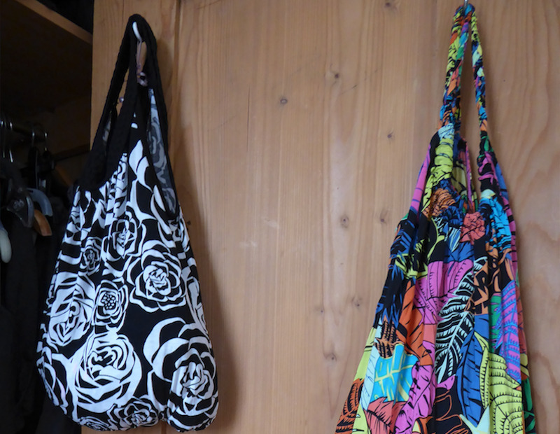 Hinweis: Zwischen den Knoten sind allerdings kleine Lücken, deswegen sind diese ungenähten Top-Taschen nicht unbedingt geeignet, um Münzgeld oder Haarspängelchen zu transportieren. Aber als Wäsche- oder Einkaufsbeutel und zur Krimskramsaufbewahrung erfüllen sie perfekt ihren Dienst – oder im Kleiderschrank als Sammelstelle für Schaltücher und Strumpfhosen.