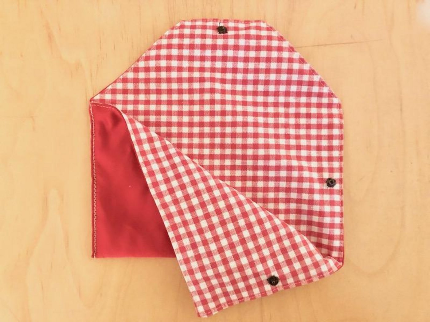 7. Auf der anderen Schmalseite und beim Deckel je ein Druckknopf annähen oder reinstanzen.