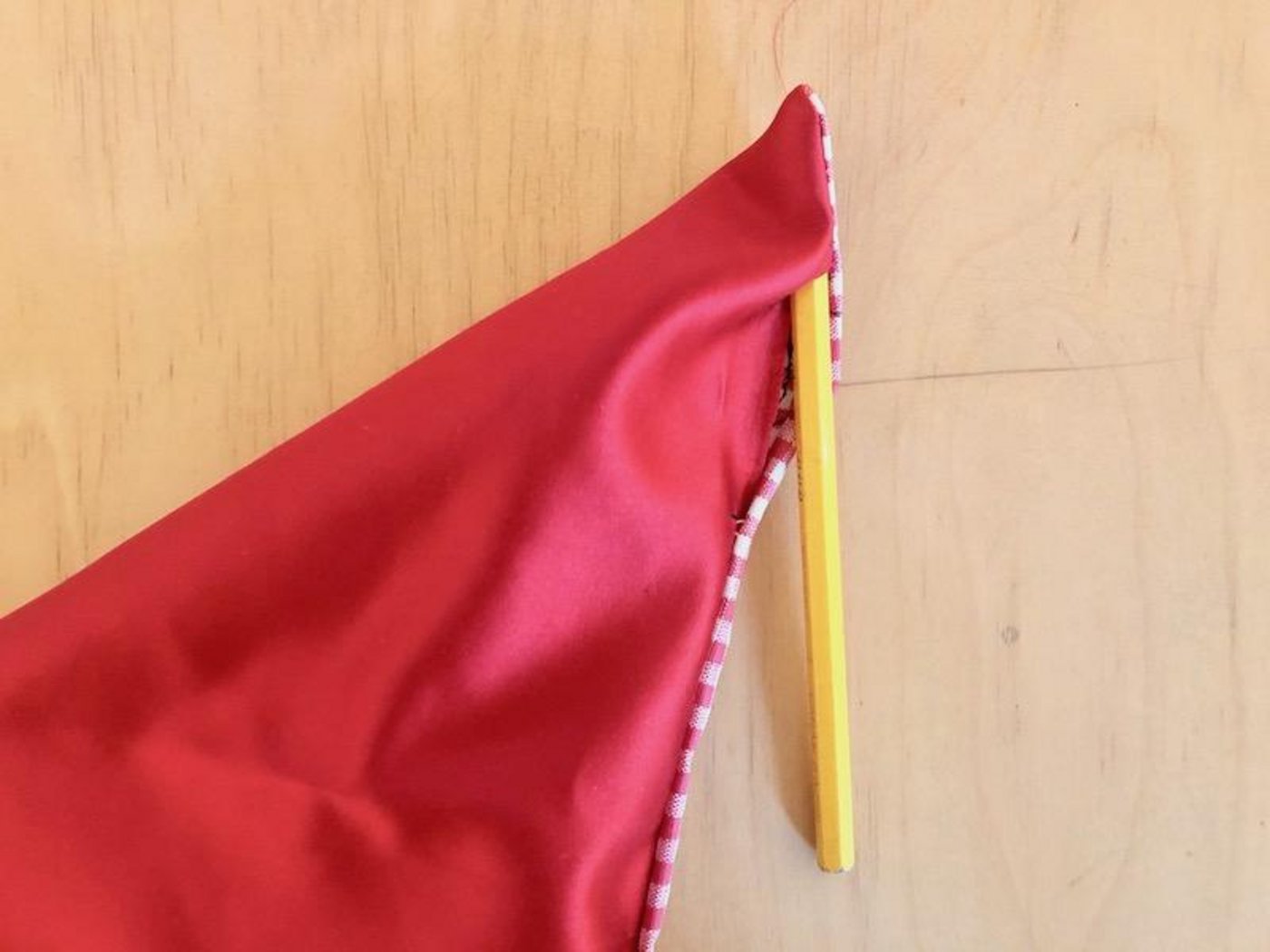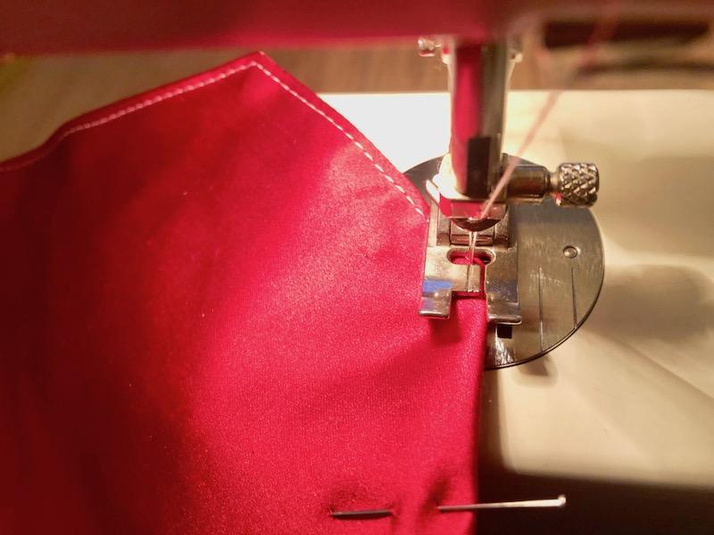 4. Die Stoffstücke stürzen; die rechte Seite ist danach aussen. Für die Ecken eventuell einen Stift zur Hilfe nehmen.
