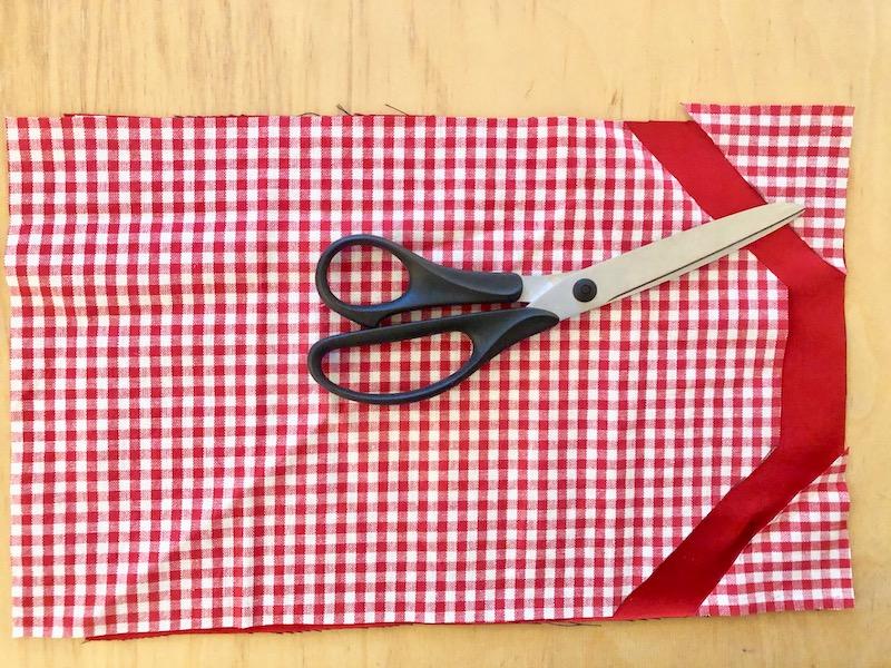 2. Bei der einen Schmalseite die beiden Ecken, 7×7 cm, abschneiden.