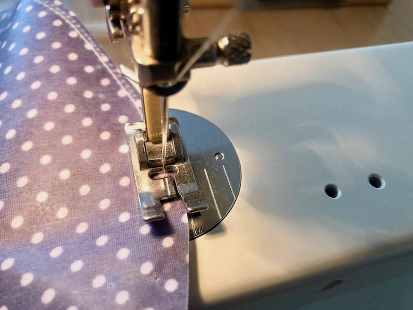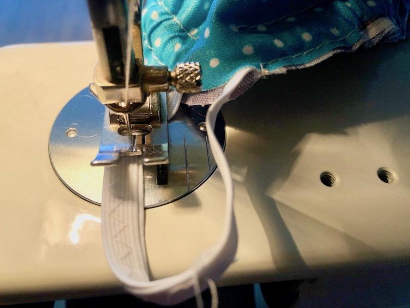 6. Gummibandenden übereinanderlegen und mit Zickzack zusammennähen.