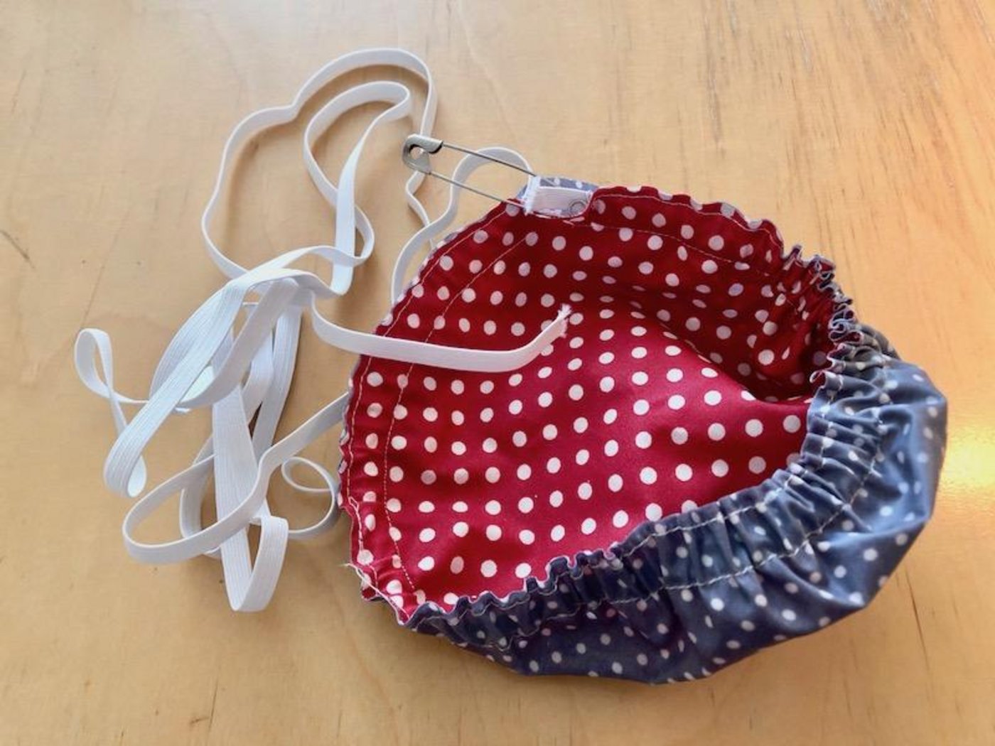 5. Gummiband mit einer Sicherheitsnadel durch die Öffnung einziehen, sodass das Cover gezügelt ist.