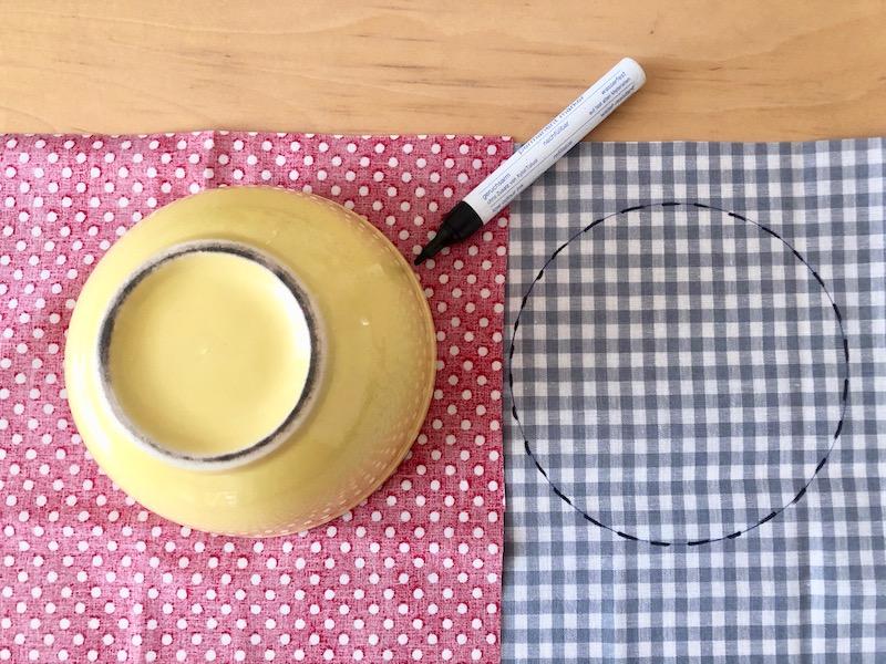 1. Durchmesser der Schale, für die das Cover gedacht ist, plus 3 bis 4 cm zweimal auf Wachstuch übertragen.
