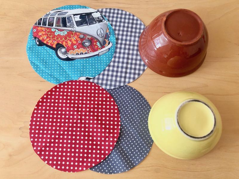 3. Die beiden Wachstuchrondellen aufeinanderlegen, sodass die schöne Seite nach aussen zeigt.