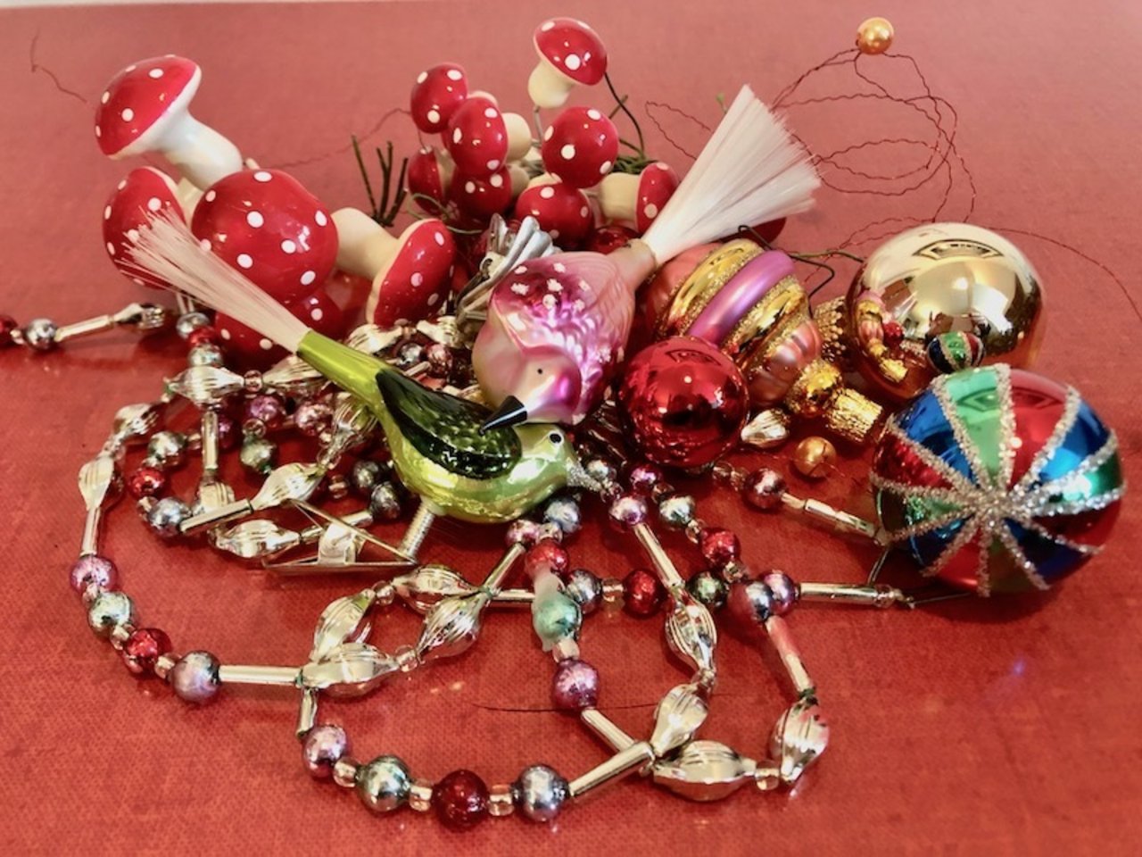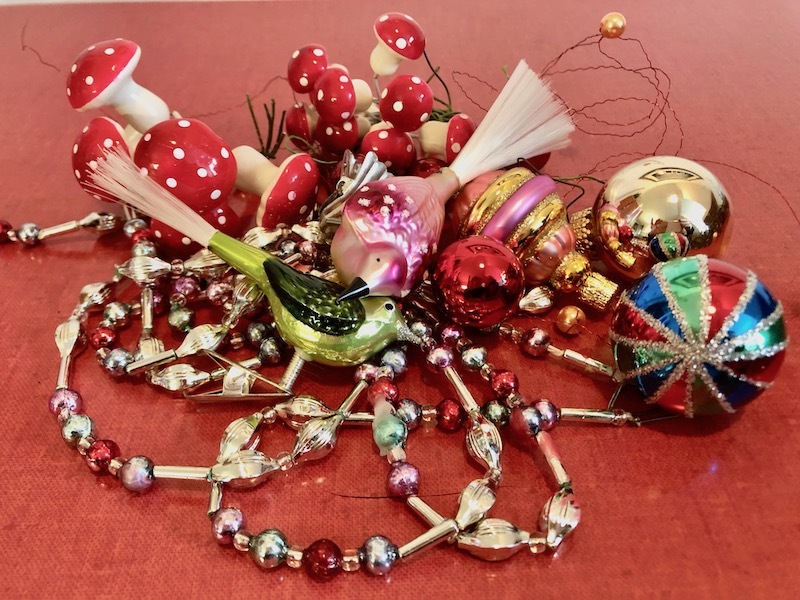 - Christbaumschmuck, Lametta, Glitzerperlen, usw.