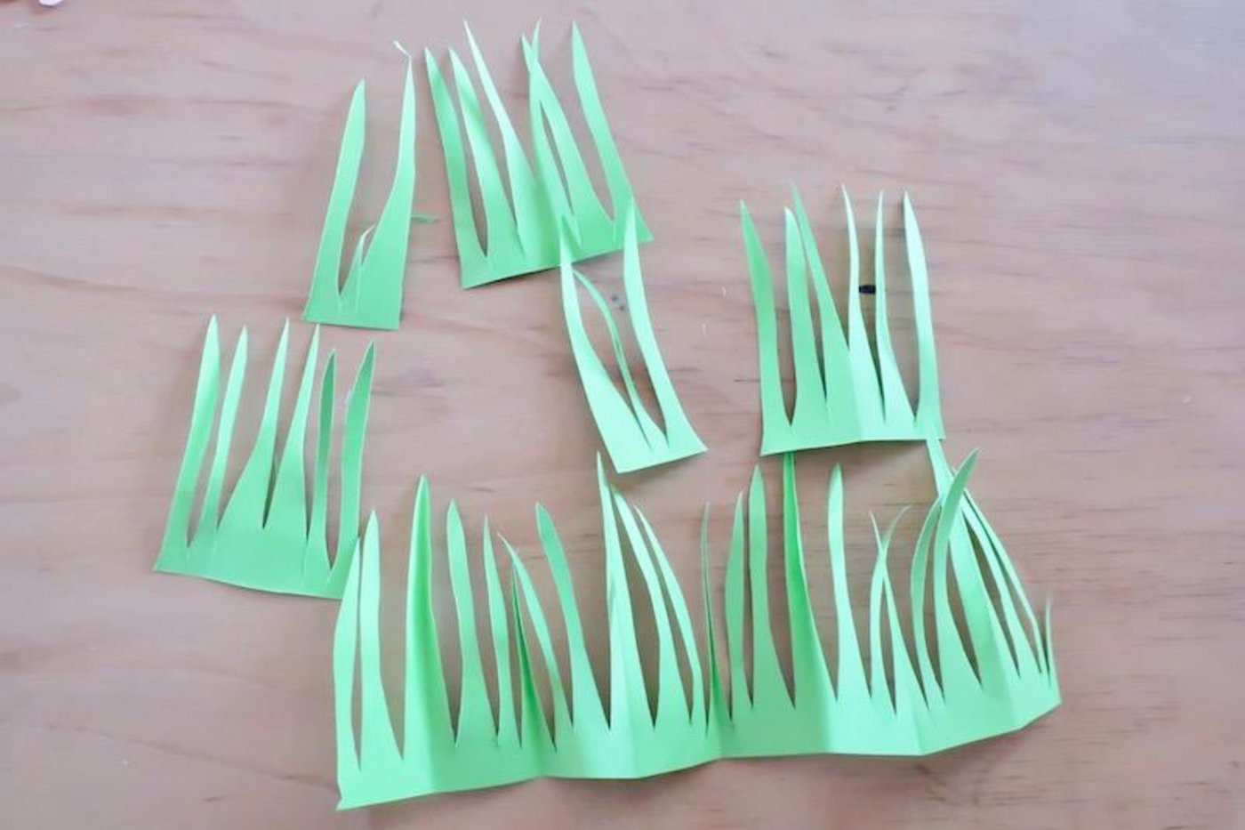 Nun das Ganze mit Blumen und Grün, das aus dem grünen Papier gebastelt wird, verzieren.