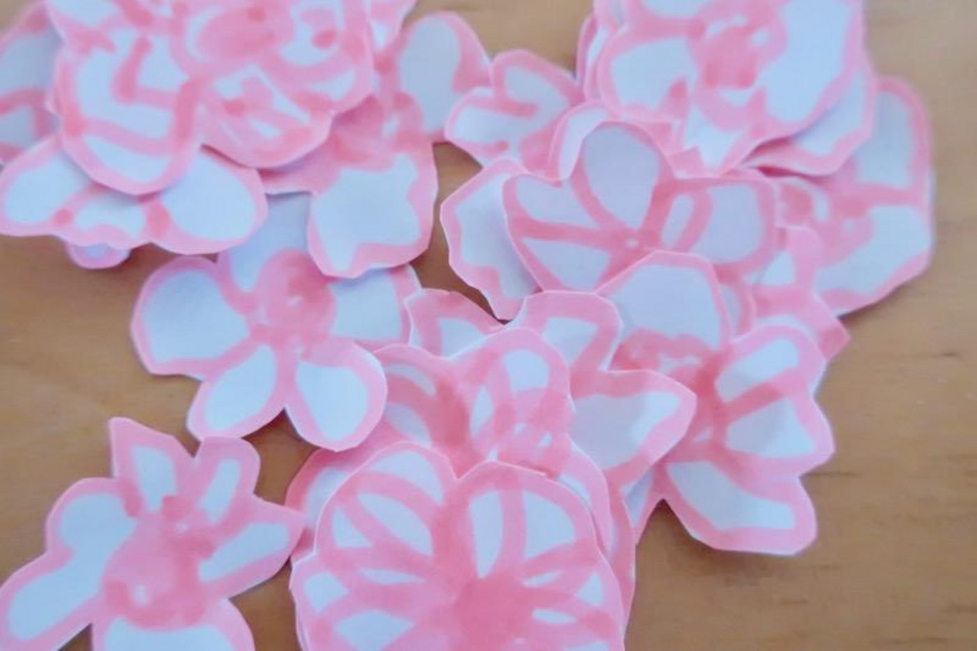 Die rote Karte auf das doppelte weisse Papier legen und den Kelch nachzeichnen.